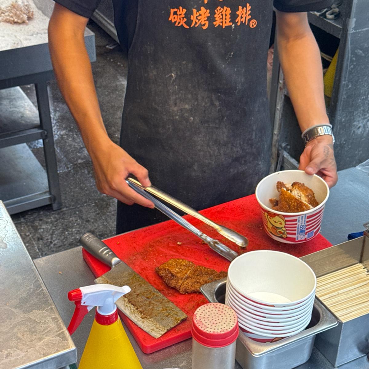 Walking into the bustling Yizhong Night Market, the variety of snack stalls is dazzling 👀. One of the popular stalls with long lines is "Yizhong 8 Liang Charcoal Grilled Chicken Steak," and today I'm here to try this piece of 🔥 charcoal grilled chicken steak!