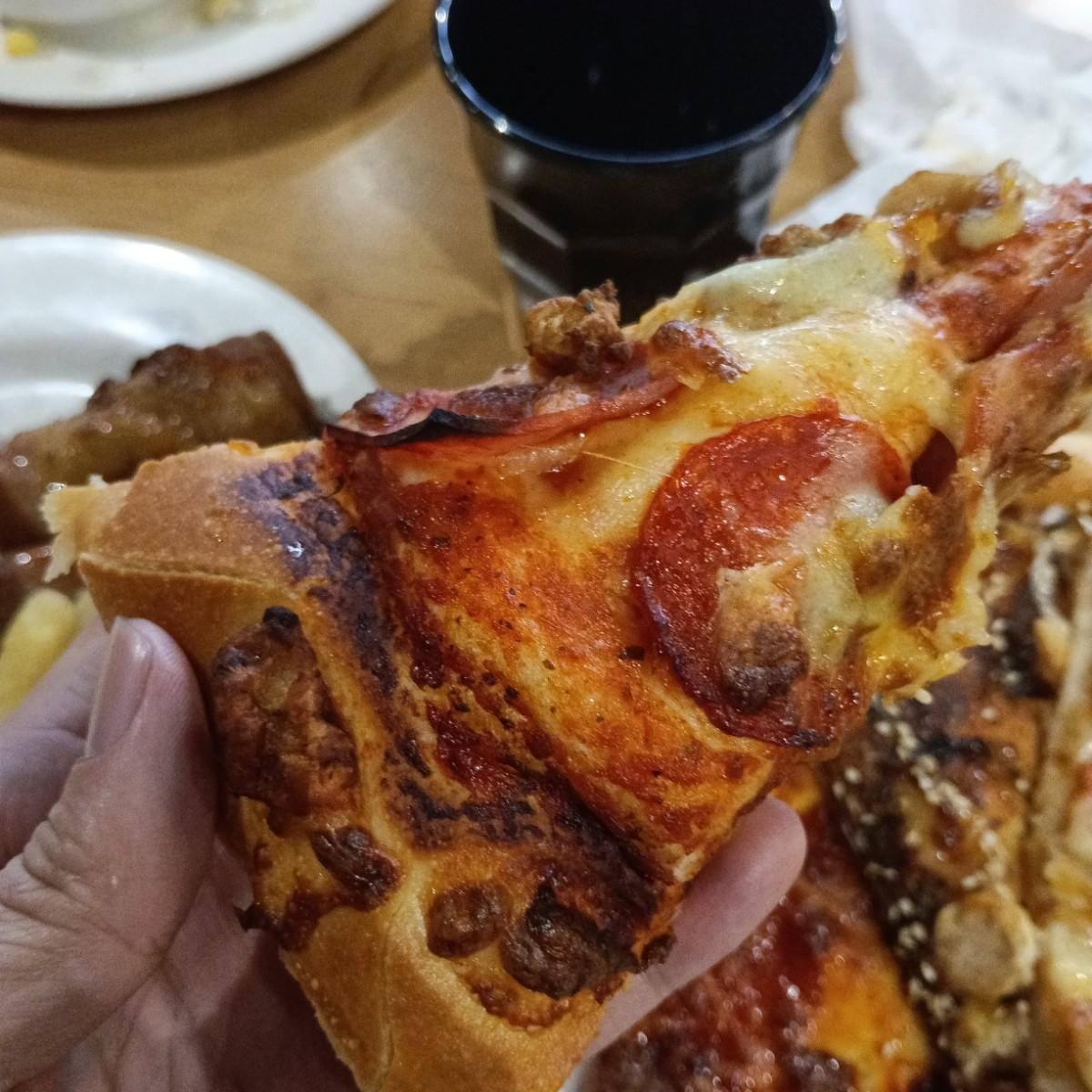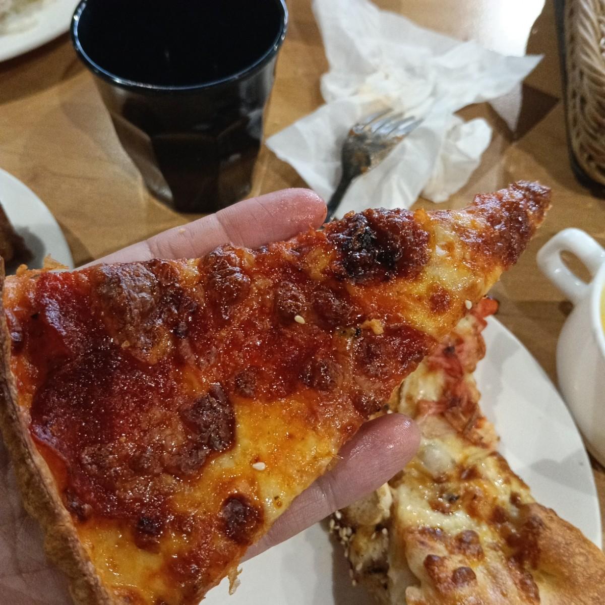 Intrigued by the fusion concept, we also order the Pepperoni slice chewy-like-Teriyaki-Chicken Pizza, eager to see how the team at Pizza Slice has interpreted this classic Japanese-Italian flavor profile. The crust is again impeccable, and the quasi-teriyaki-marinated pepperoni, coupled with a medley of fresh vegetables and a sweet-savory glaze, creates a harmonious balance that leaves me thoroughly impressed.