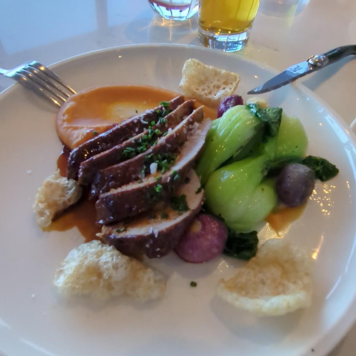 We had pork and chicken which both very good with well matching sides and fresh veggies.