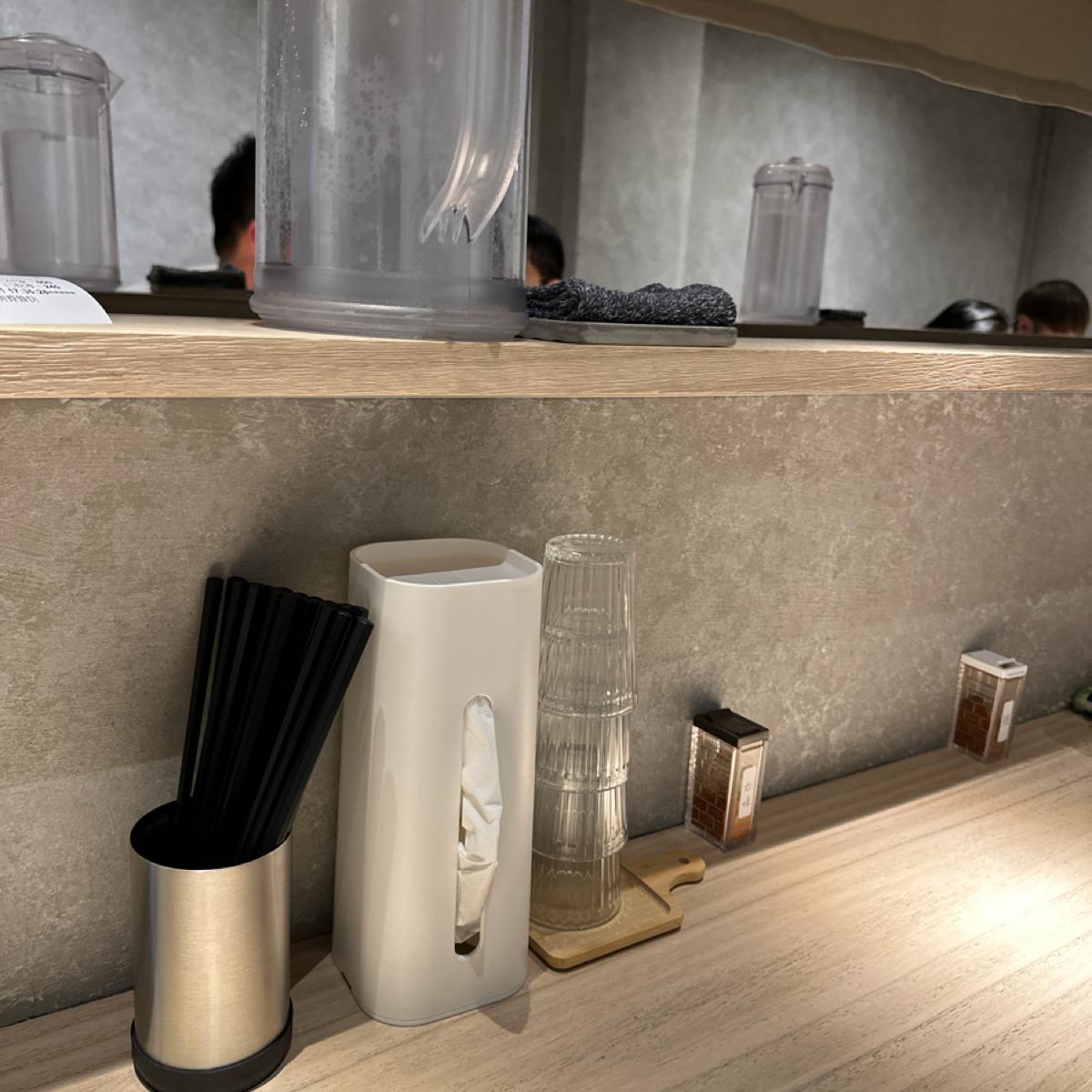 The design of the seating area fully reflects the characteristics of a Japanese ramen shop. Each seat thoughtfully provides shichimi powder, iced water, and tissues, allowing customers to adjust the flavor according to their preferences and enjoy a comfortable dining experience.
