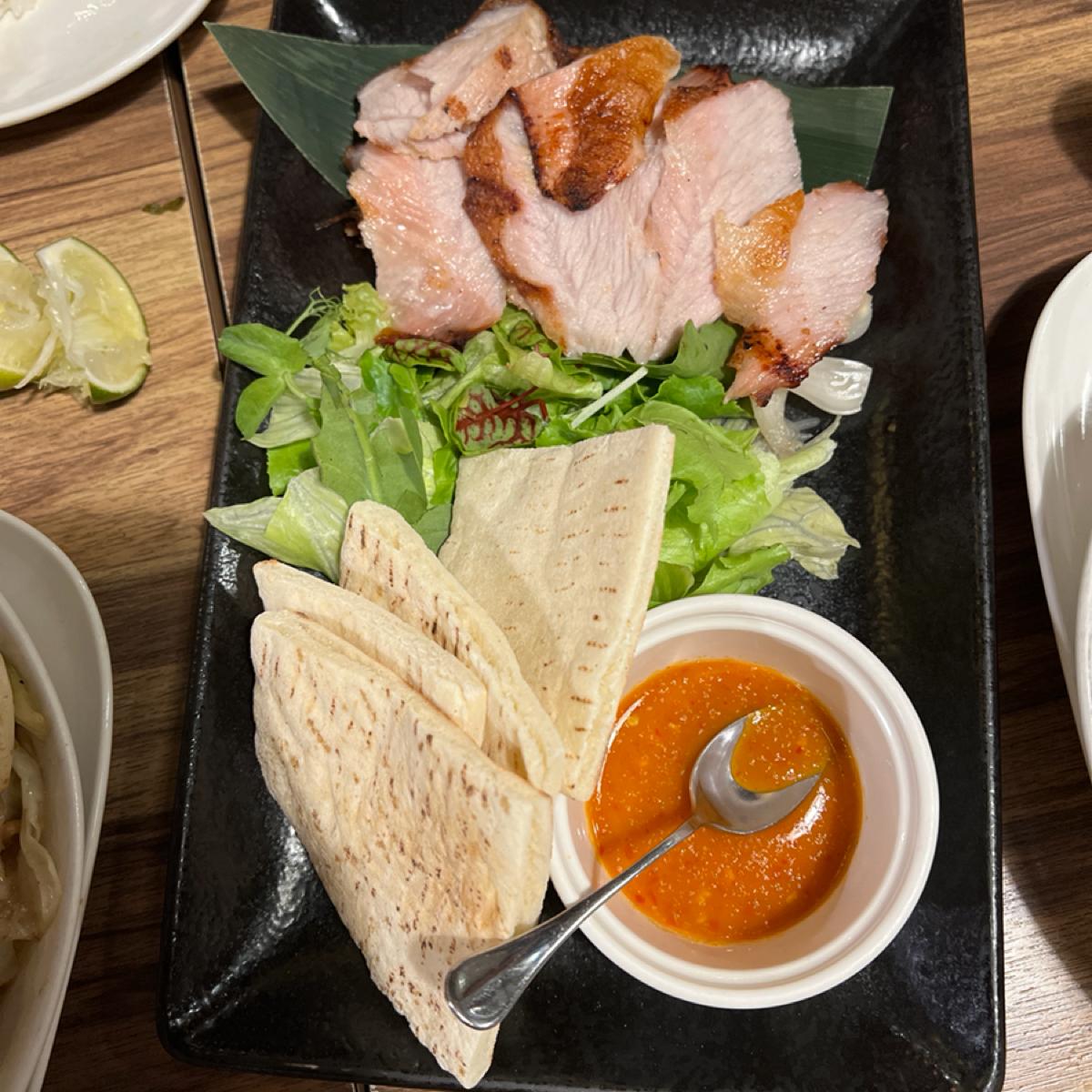 Charcoal grilled pork neck / 485 yuan: The marinated pork neck is cut quite thickly and can be eaten with the scones with lettuce and sauce. It is quite good, but the portion is small.