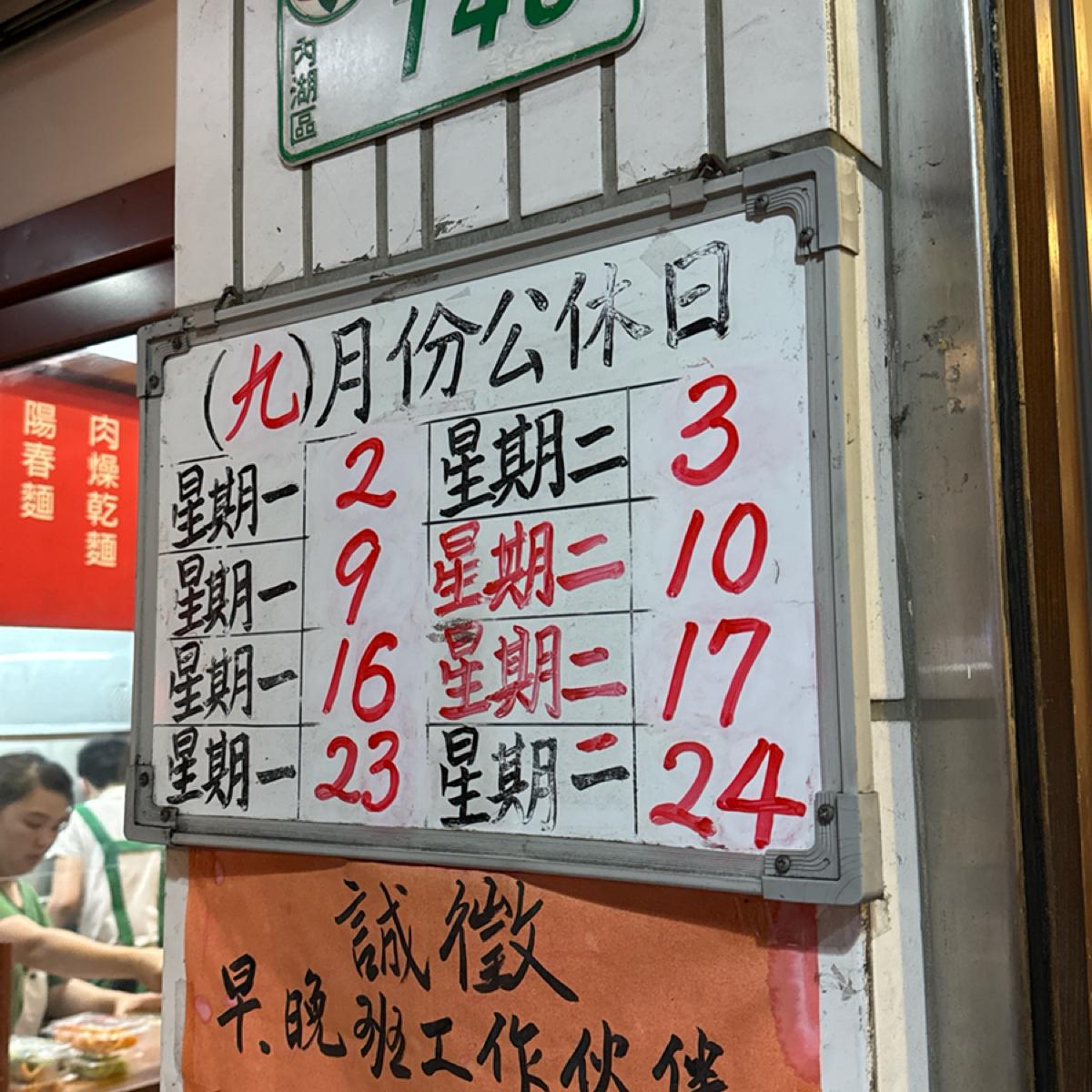 Taipei Neihu - A highly rated local noodle shop that is always packed during mealtime. The preserved vegetable and shredded pork noodles are delicious! The side dishes are only NT$35, making it a great value!