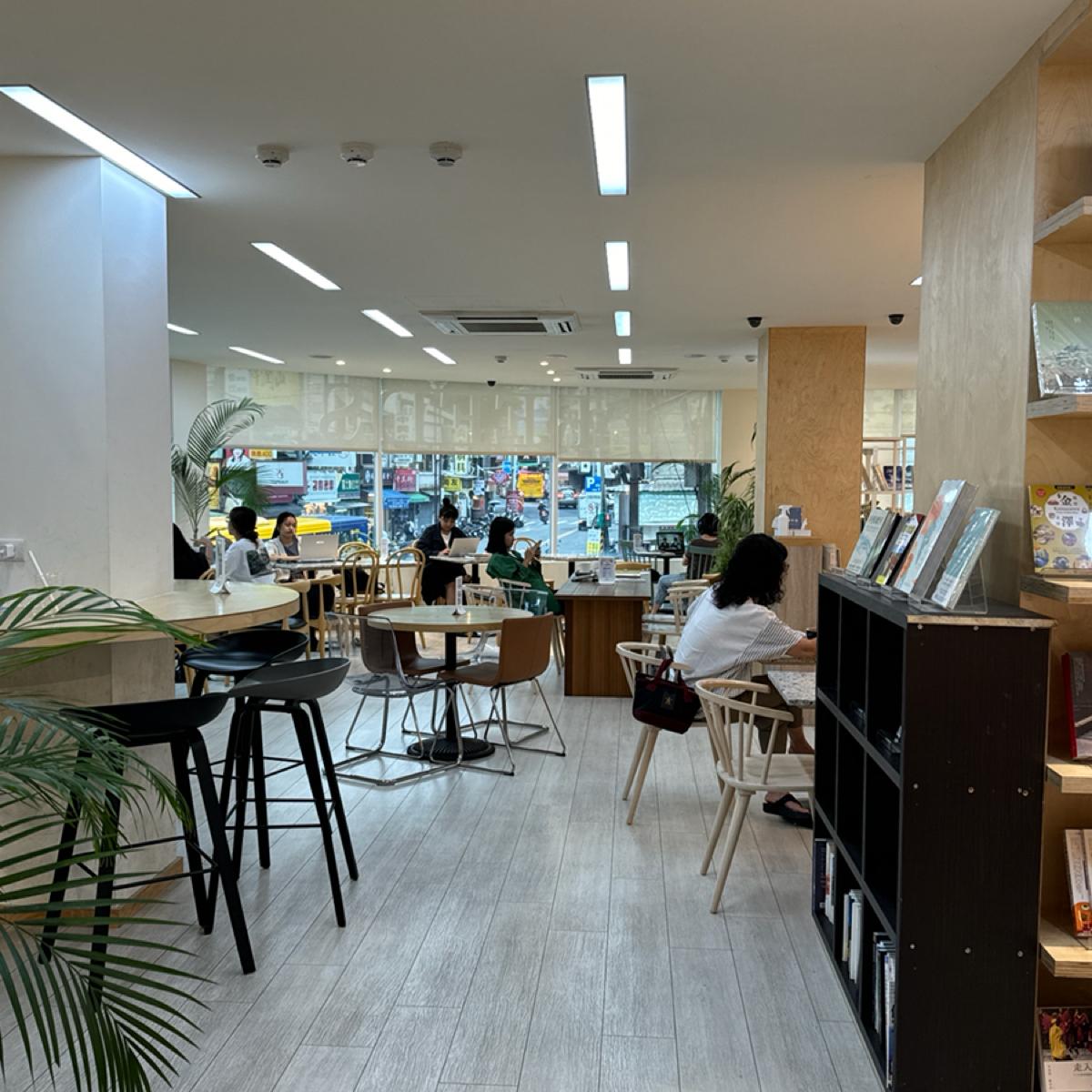 The 2F is a comfortable, spacious and well-lit cafe and bookstore space. There is no time limit and plug stations are provided, and you can sit and read with books from the bookstore.