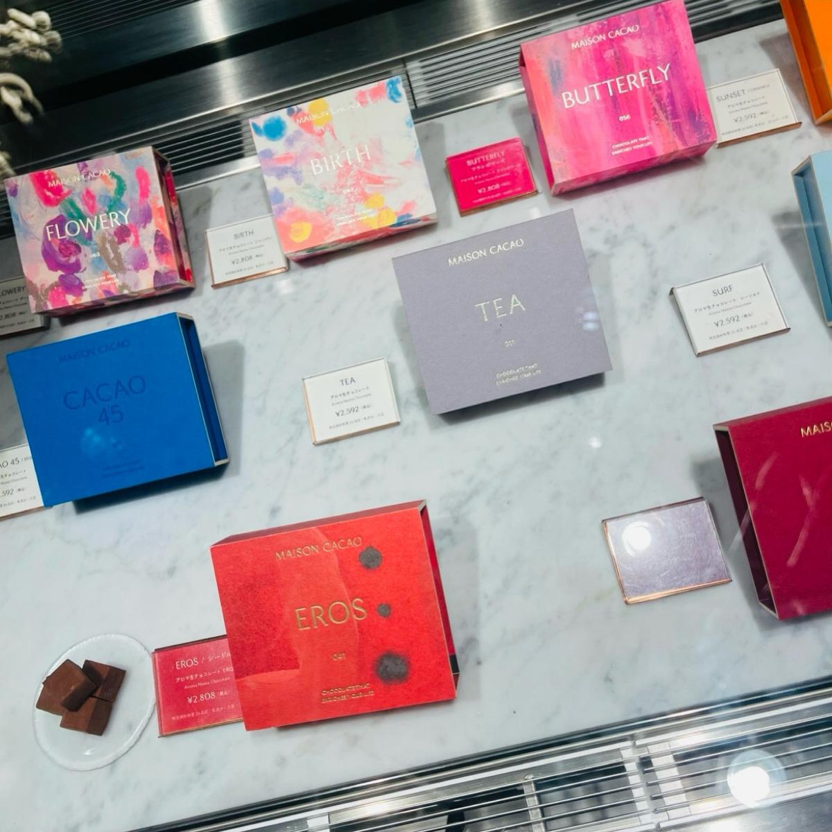The concept of "CHOCOLATE THAT ENRICHES YOUR LIFE" at MAISON CACAO seems to focus on chocolate that enriches your life. They source cacao from producers who carefully cultivate it in distant Colombia. Their chocolatier creates astonishing chocolates that you've never encountered before. It seems that they aim to connect moments—from selecting chocolate as a reward for yourself, or while enjoying chocolate with a special someone, to creating time and emotional ties.