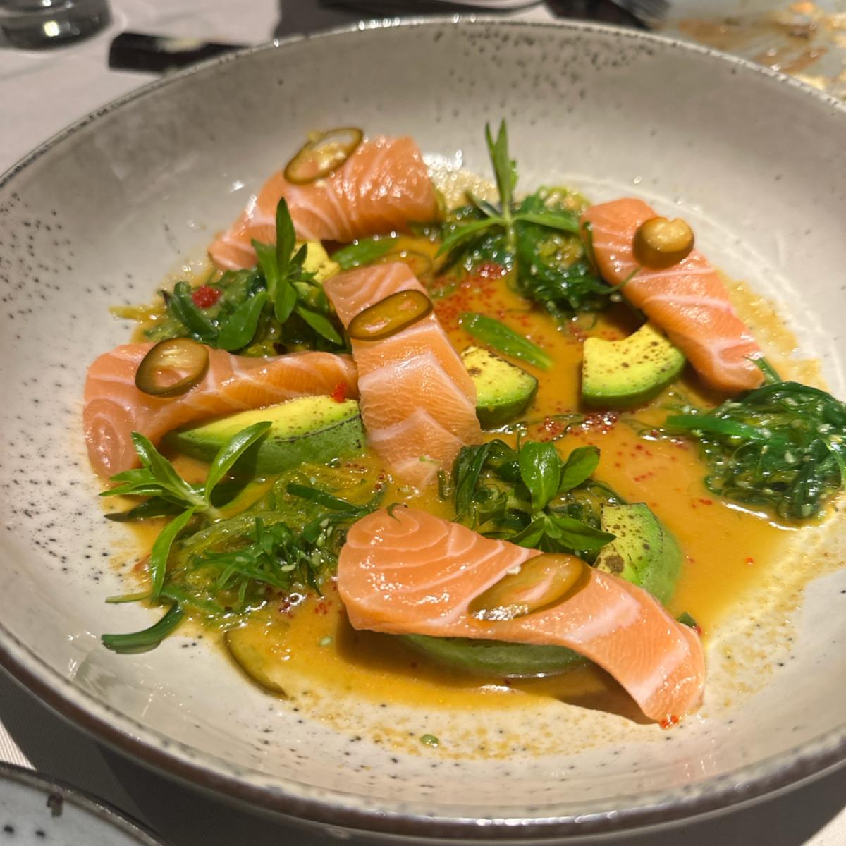 As the name suggests, it is a combination of raw salmon and avocado! This sauce tastes a bit like mango jam. It is paired with the freshness of salmon and the original taste of avocado, giving the whole dish a sweet and sour taste, adding to the texture!