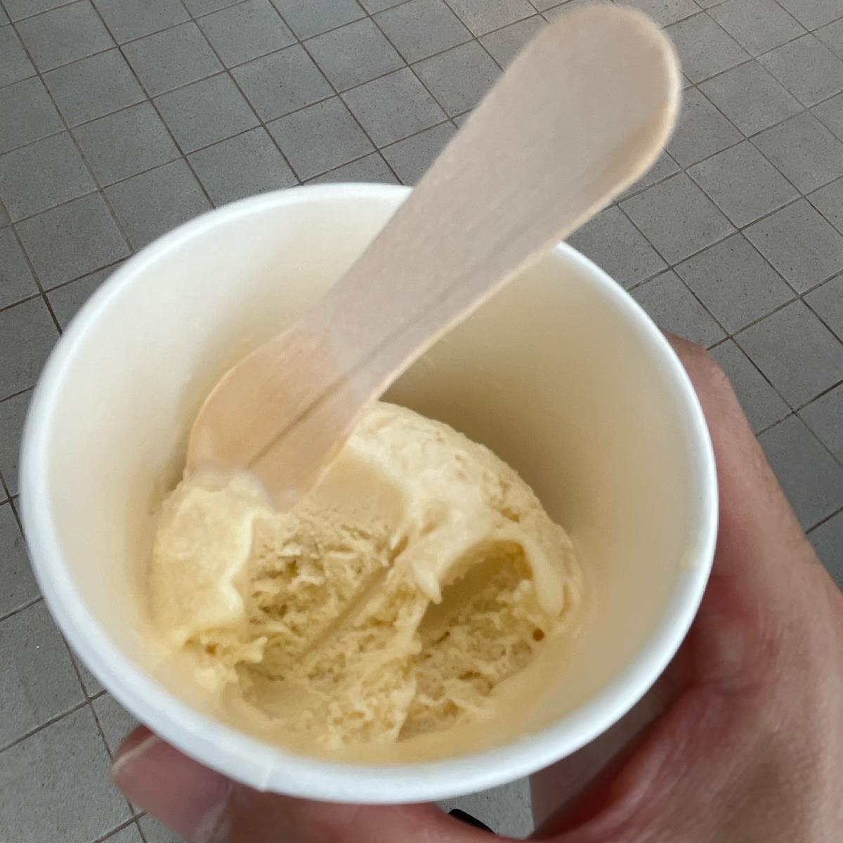 這次點的是開心果冰淇淋。一入口就能感受到堅果的香氣很濃,不是人工香精那種單一味道,而是帶點油脂感與自然的堅果甜味,質地滑順綿密,融化速度也剛好,不會太快化掉。整體來說是走比較偏法式的細緻路線,風味乾淨且有層次。