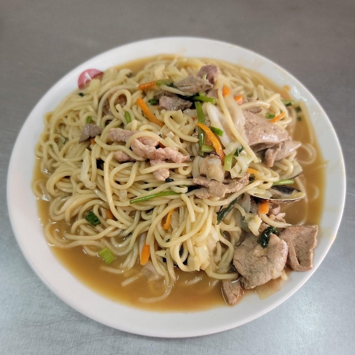A traditional snack bar located on Dongmen Road. The address seems to be in an alley; in fact, it is on Dongmen Road, close to 7-11. Most of the items in the store are quick-fried dishes, with prices ranging from around 6X to 9X, which is very affordable. There is only the proprietress in the store, and she cooks it to order, so you have to wait a little when there are many people. If you don't want to wait, you can call and make a reservation in advance. I have to say that the portions are really large. Fried noodles with shredded pork, fried noodles with pork liver, and even clams in them. It’s like assorted fried noodles, and the portions are super filling. The landlady said that there were factories or gangsters around here, and everyone wanted to eat well, so she gave them a lot of portions. The taste is not too heavy, but it is full of traditional craftsmanship. I recommend the shredded pork fried noodles, pork liver fried noodles, and shrimp fried rice.