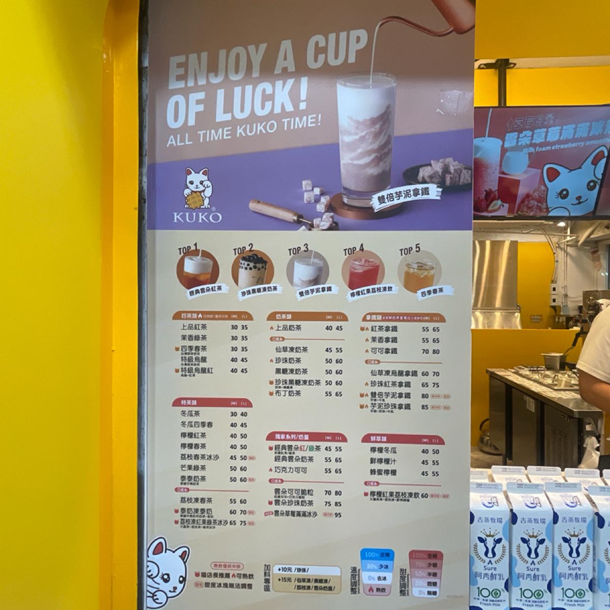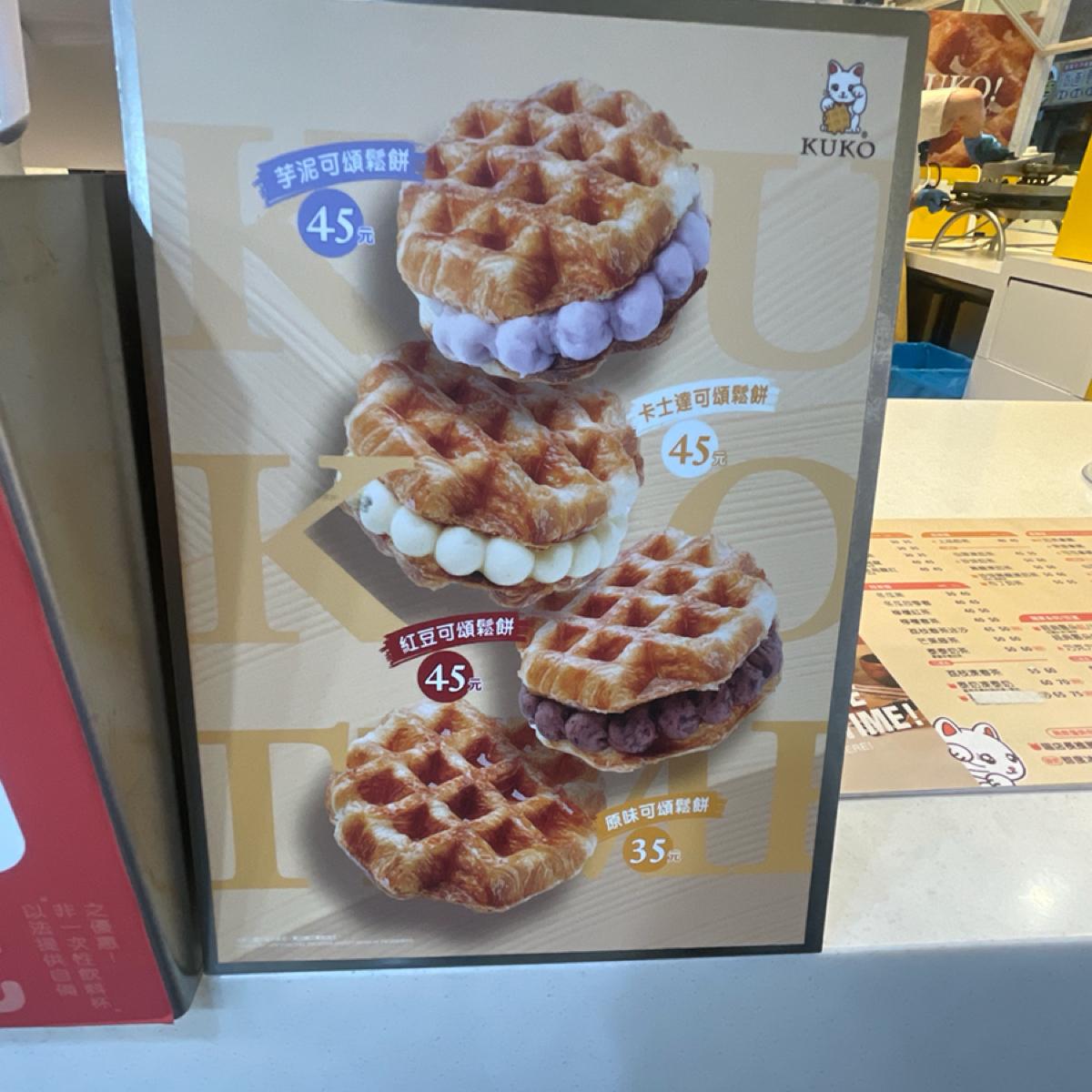 In addition to a variety of drinks, they also sell freshly baked waffles (35-45 yuan).
