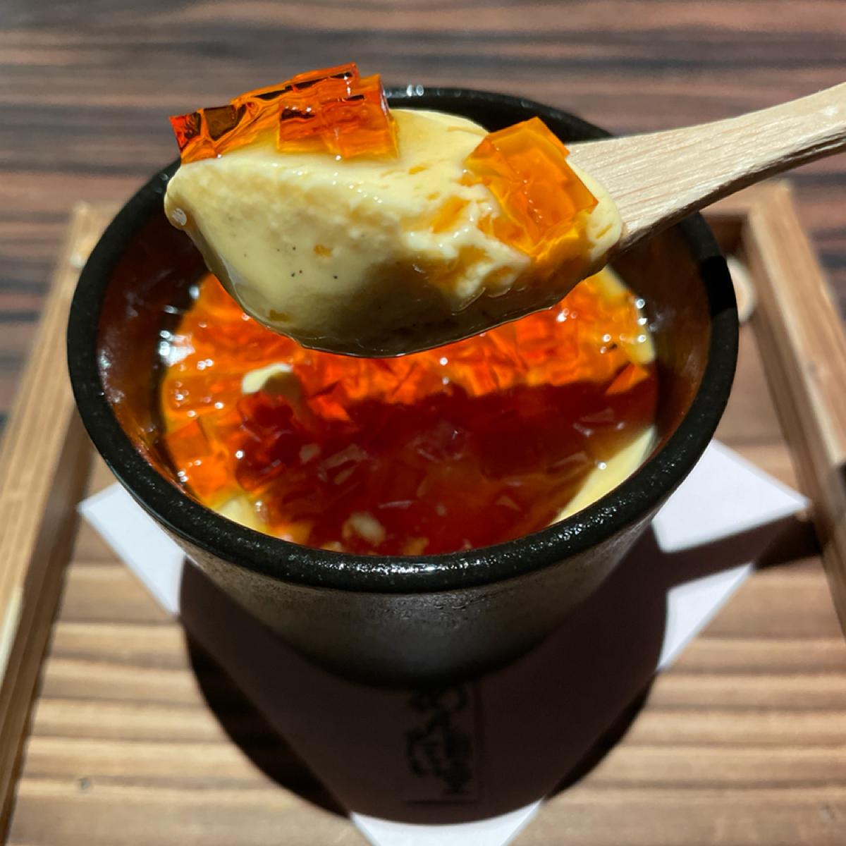 It doesn't look like much, but I was surprised. After eating their pudding, I can no longer say that other puddings melt in your mouth. It really melts as soon as you eat it. It has the texture of ice cream. ~~The top of the pudding is similar to crushed tea jelly, which adds a layer of texture and is the finishing touch.