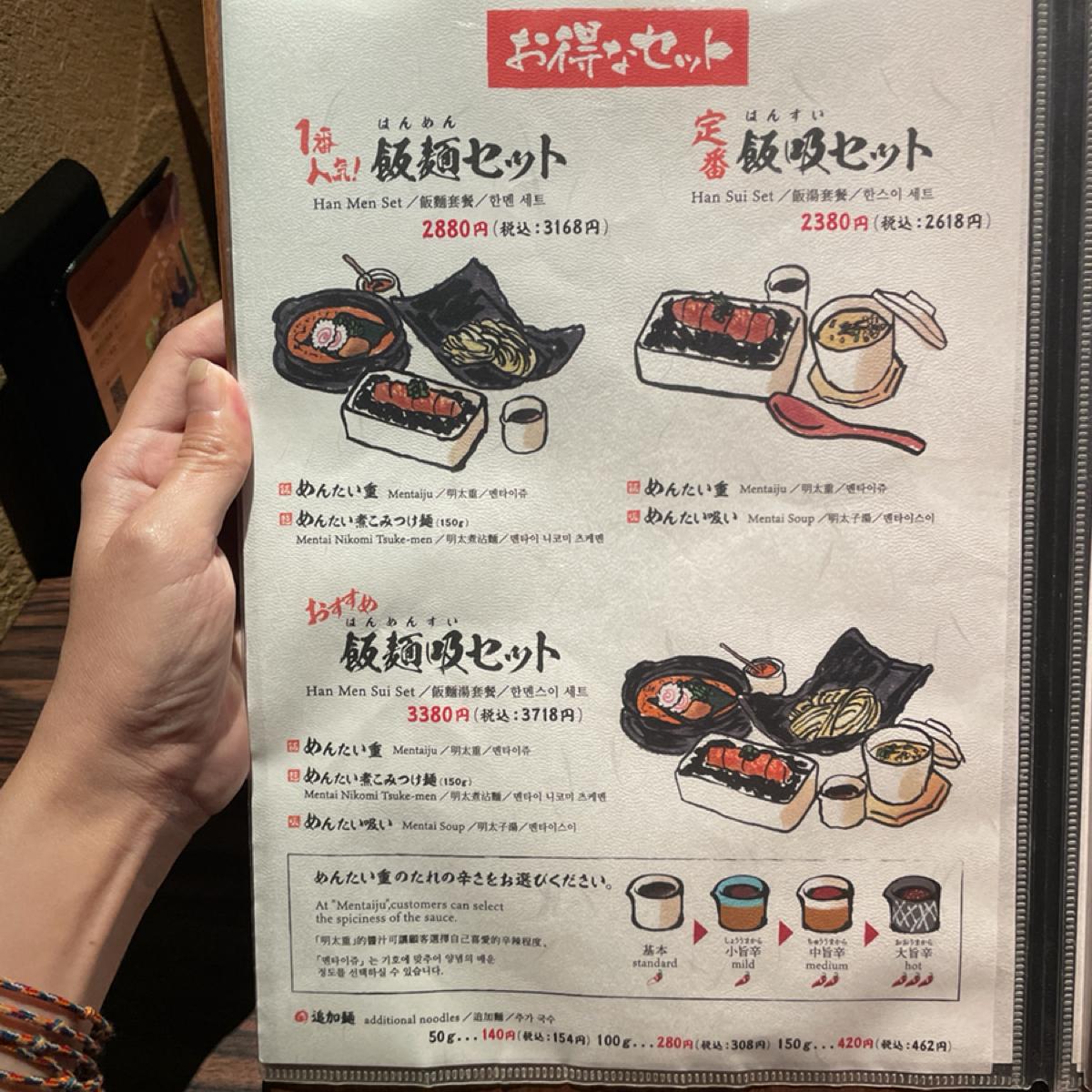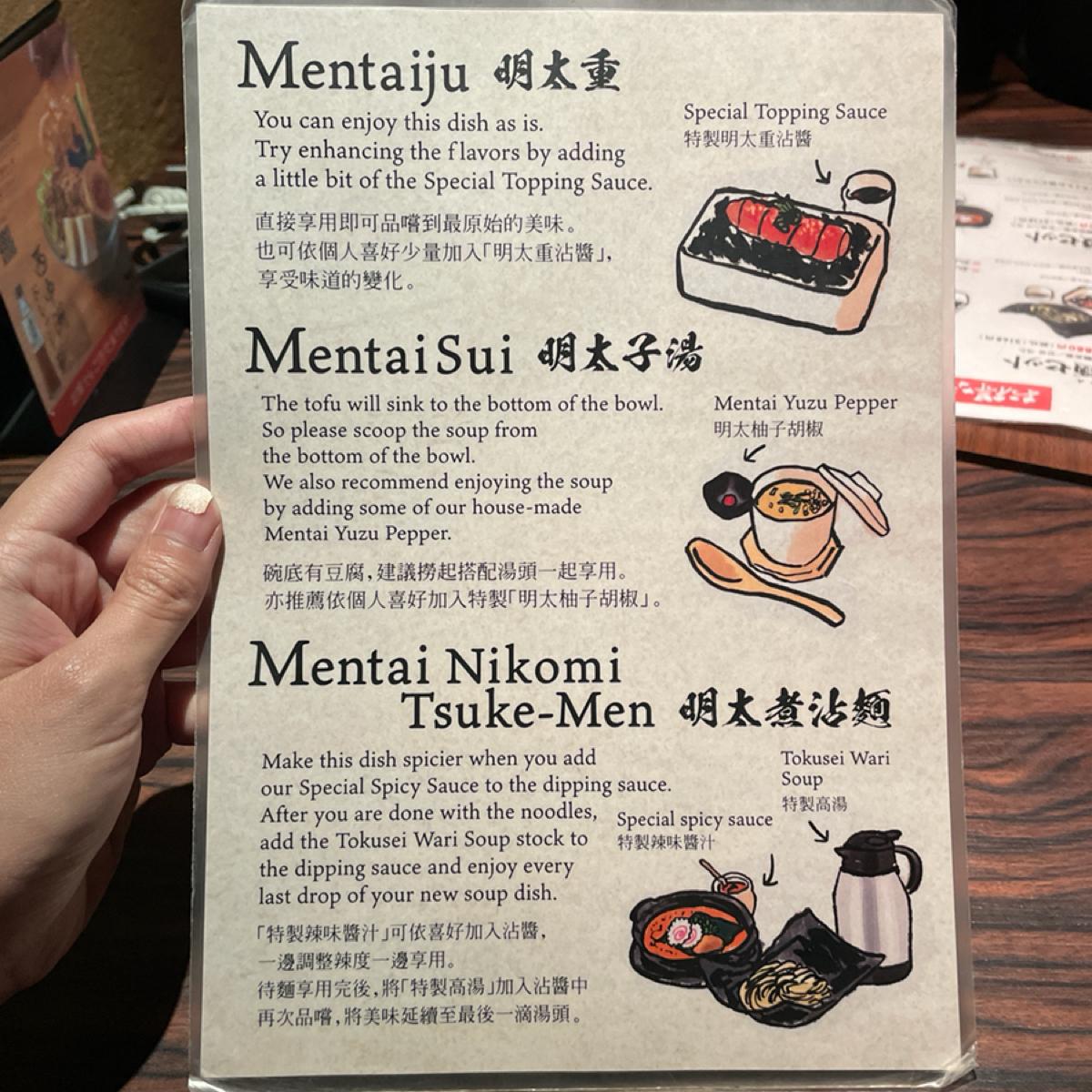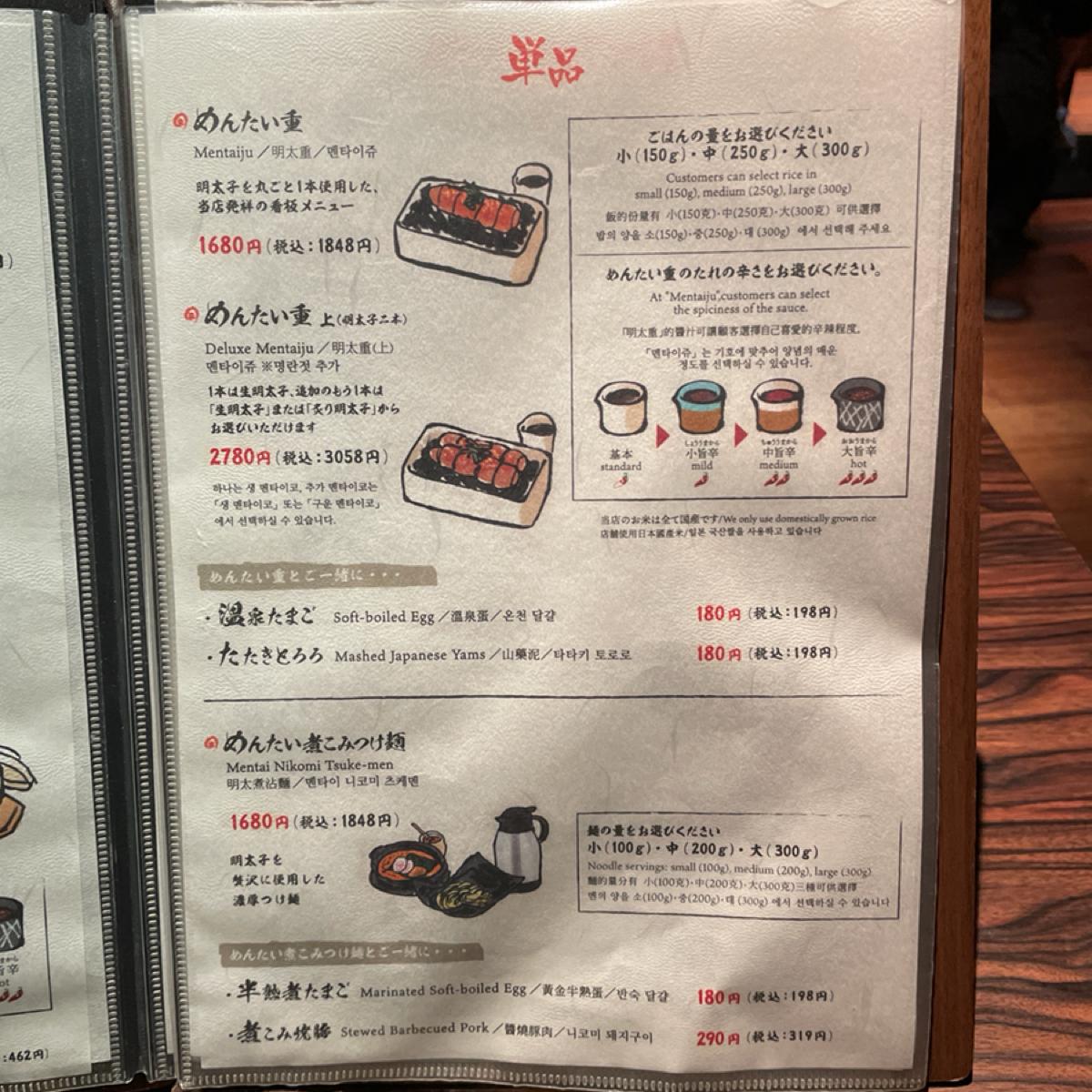 The menu and food descriptions are all in Chinese, and it’s tourist-friendly ~ We both ordered the popular rice and noodle set for ¥3168, which includes a portion of mentaiko rice and a portion of mentaiko tsukemen, two signature items that are satisfying at once !