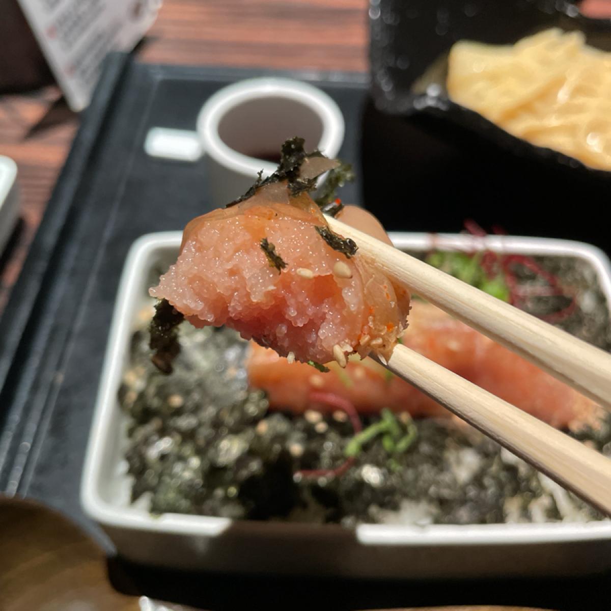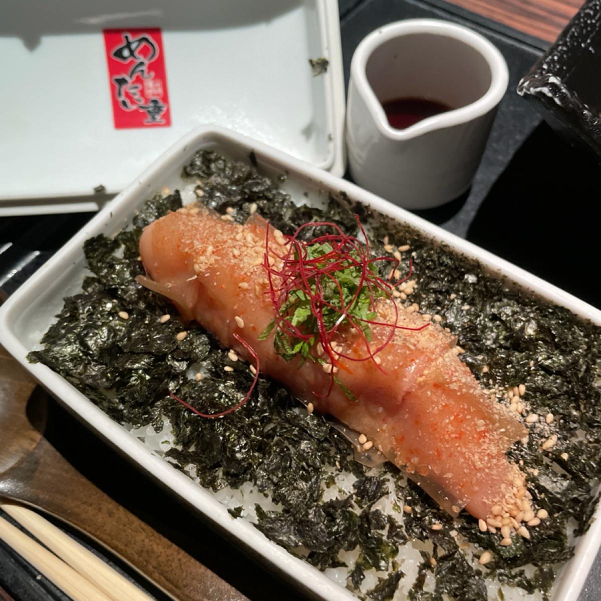 In fact, it is rice covered with seaweed, and then a whole strip of mentaiko and mentaiko dipping sauce are placed on it. You can choose the spiciness and pour it on the rice to eat together.
