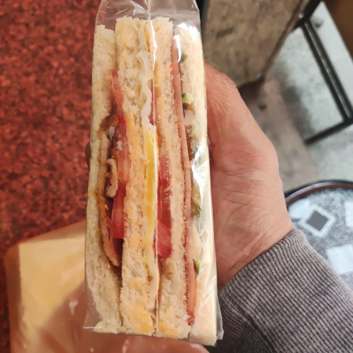 My favorite is to buy a Hui Hui sandwich from a breakfast shop I’ve never been to, because each Hui Hui sandwich has its own unique ingredients. The price of 70 yuan is not expensive, the price is reasonable, and the store is friendly. The sandwich contains pork slices, tomatoes, fried eggs, cucumbers, and no onions. It is neutral and refreshing, not bad, highly recommended!