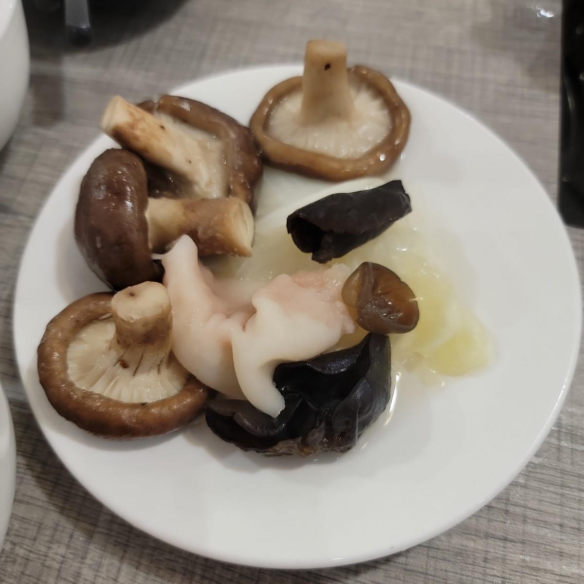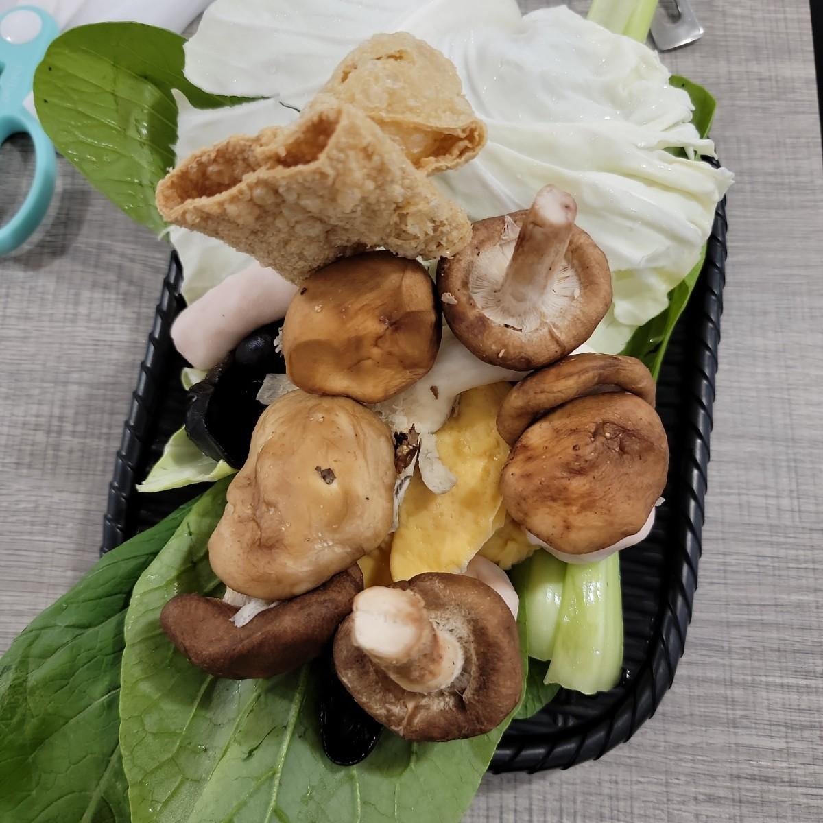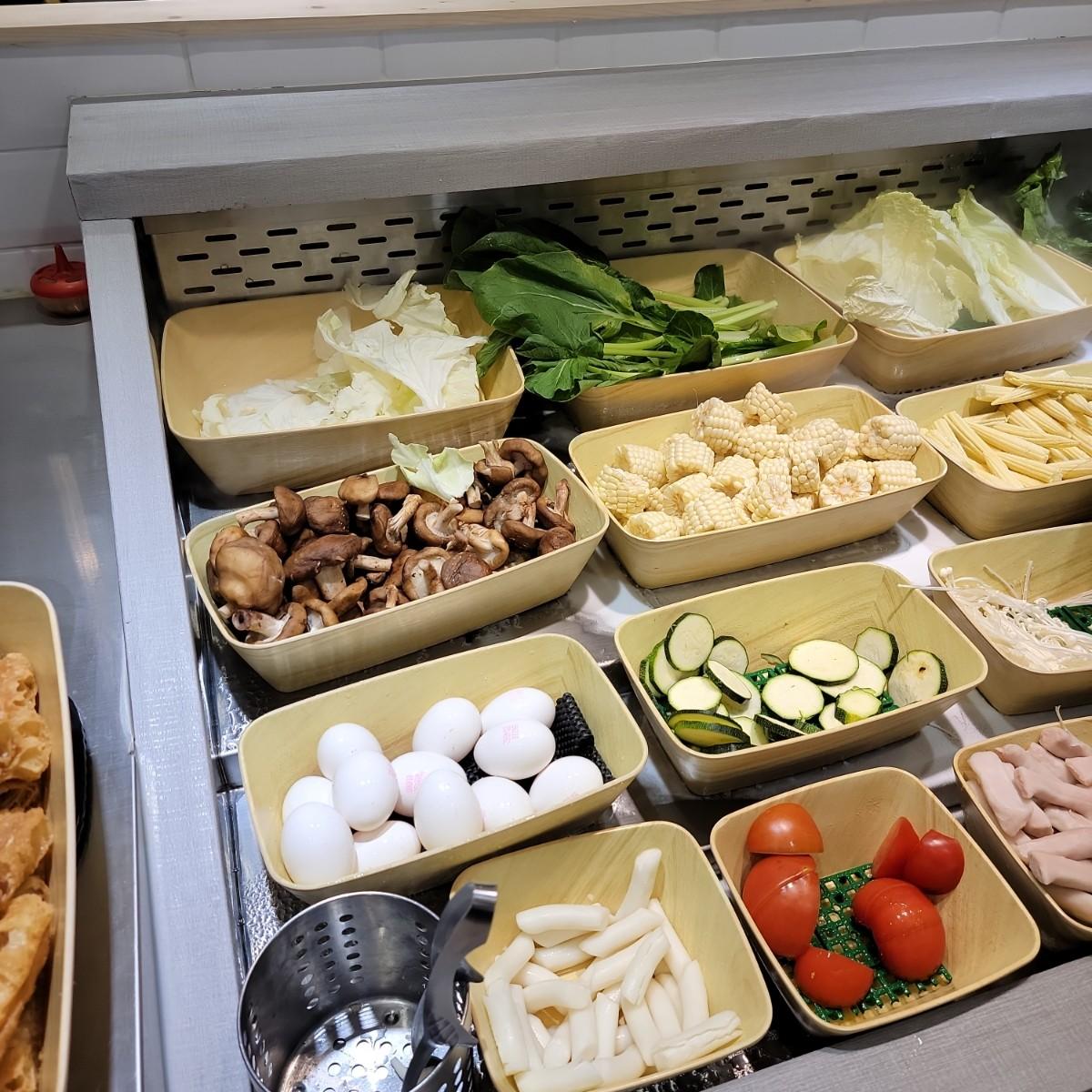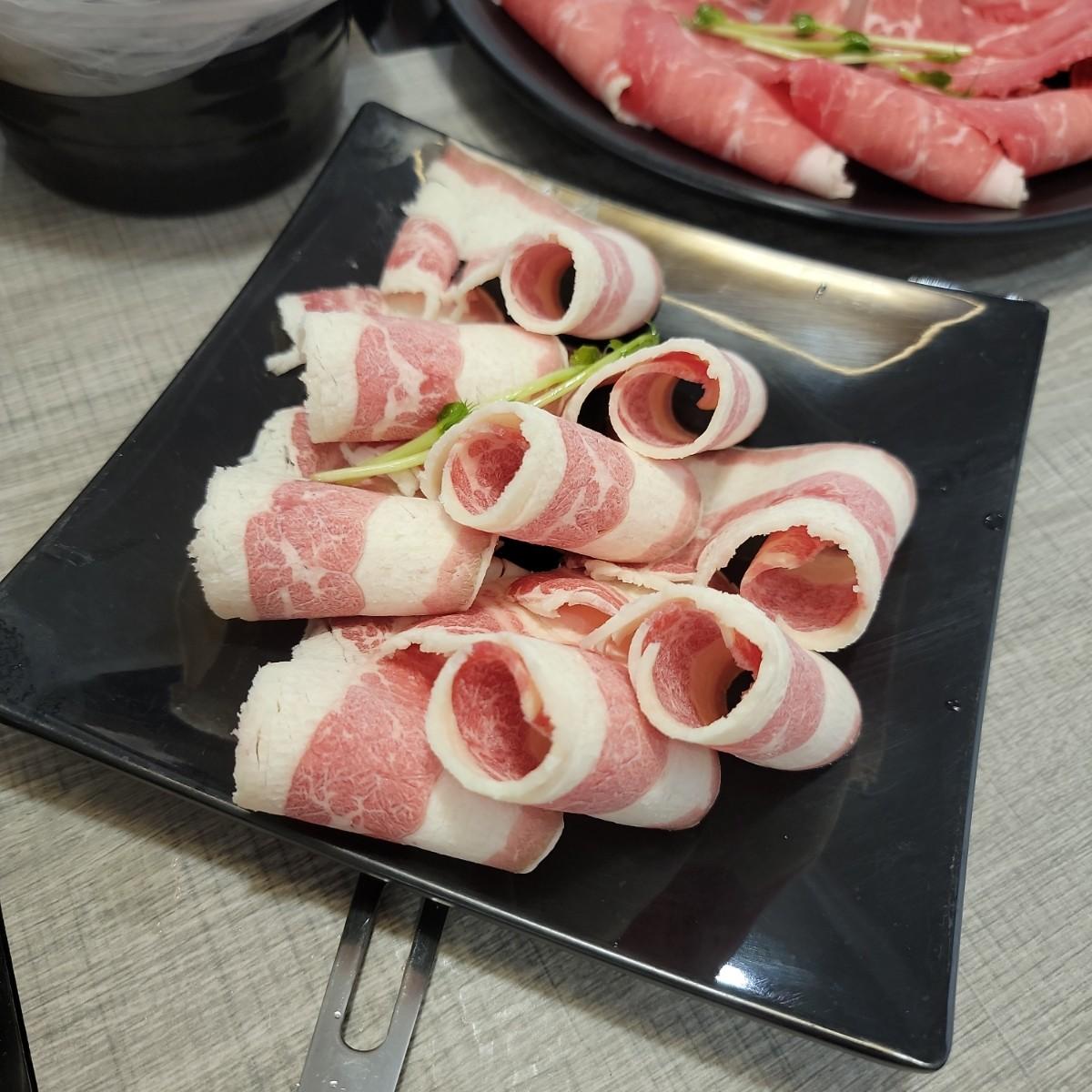 The self-service area has a small selection not too much variety; by the end, I was just repeating the same items, but the availability of eggs deserves credit. I don't know if it's because they just opened, but the staff seemed a bit slow. I waited at least 15 minutes for the soup base to arrive. The portion sizes of the meat felt a bit misleading; it didn't seem to match the advertised amount, but the quality was decent. It appeared that as a registered member, I received an extra dish of beef belly, so I chose that. Since I was eating with kids, I opted for the mildest kombu soup base, which was not overly seasoned.