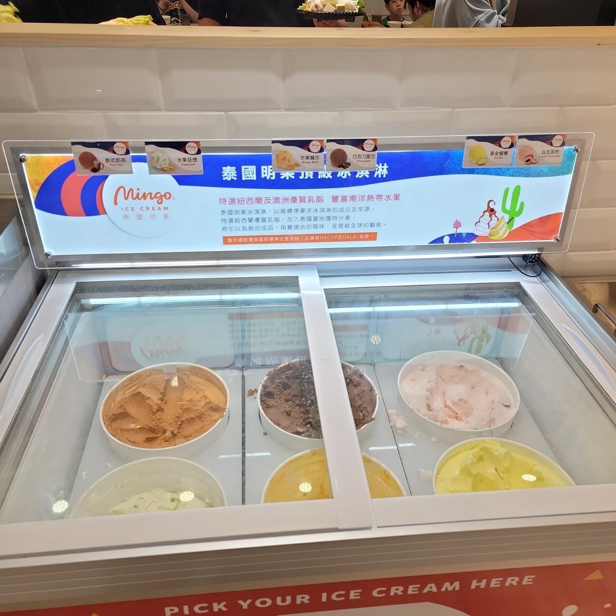 From the outside, the space created by the full transparent floor-to-ceiling windows gives a sense of spaciousness and freshness; the interior features simple and bright white decor. The walkway is wide, and the seating arrangement feels loose and not overcrowded, with a self-service area in the middle that includes drinks and ice cream.