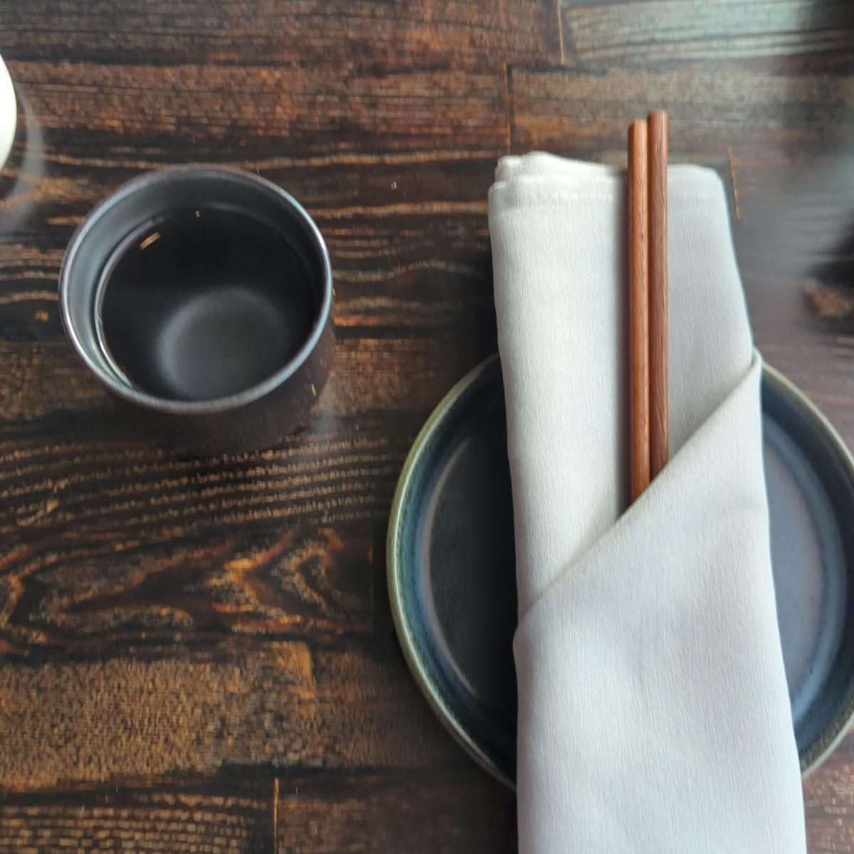 (Did you see the chopsticks and napkin in the photo? The napkin is simple to fold. While eagerly awaiting the dishes, I took a photo, and I learned how to do it.)