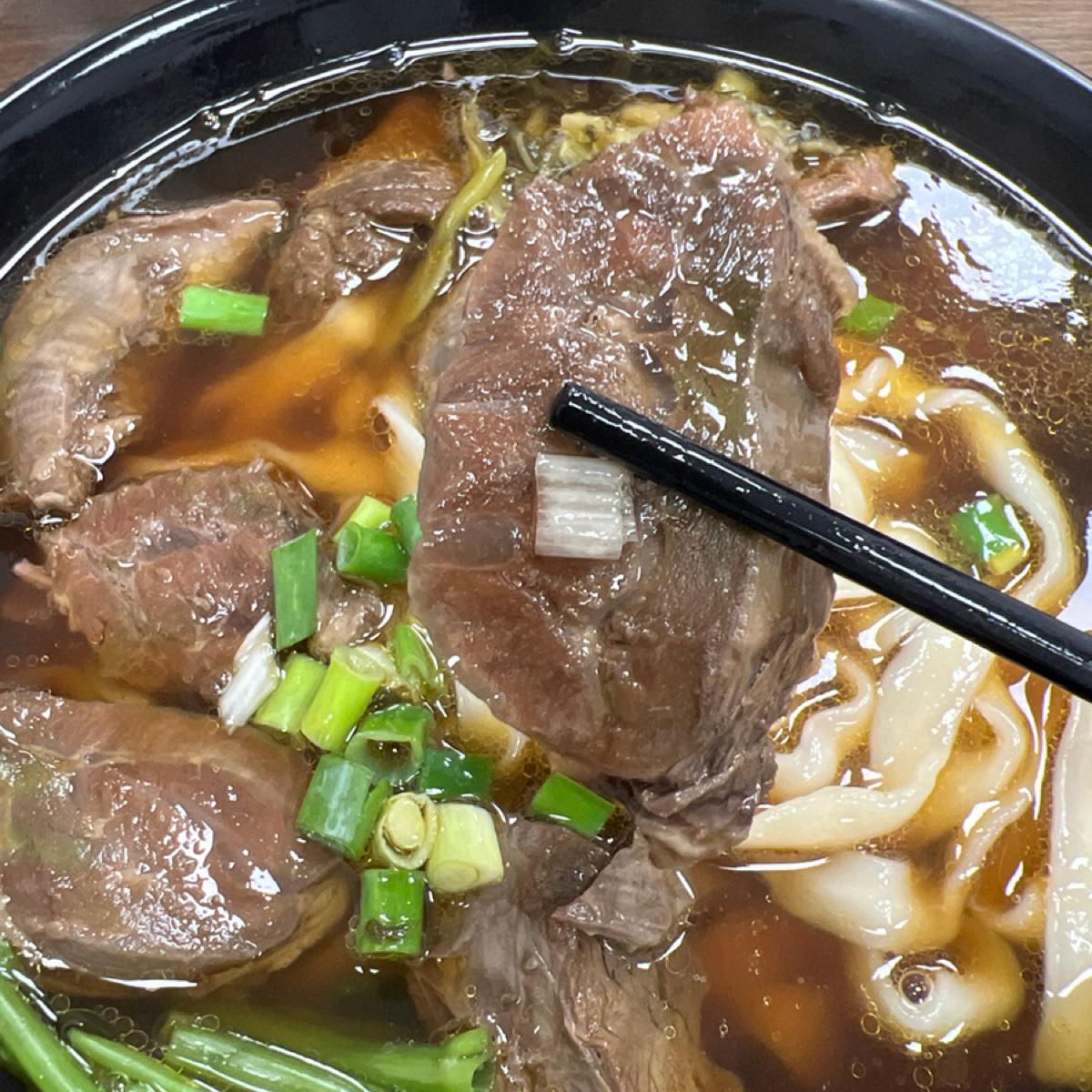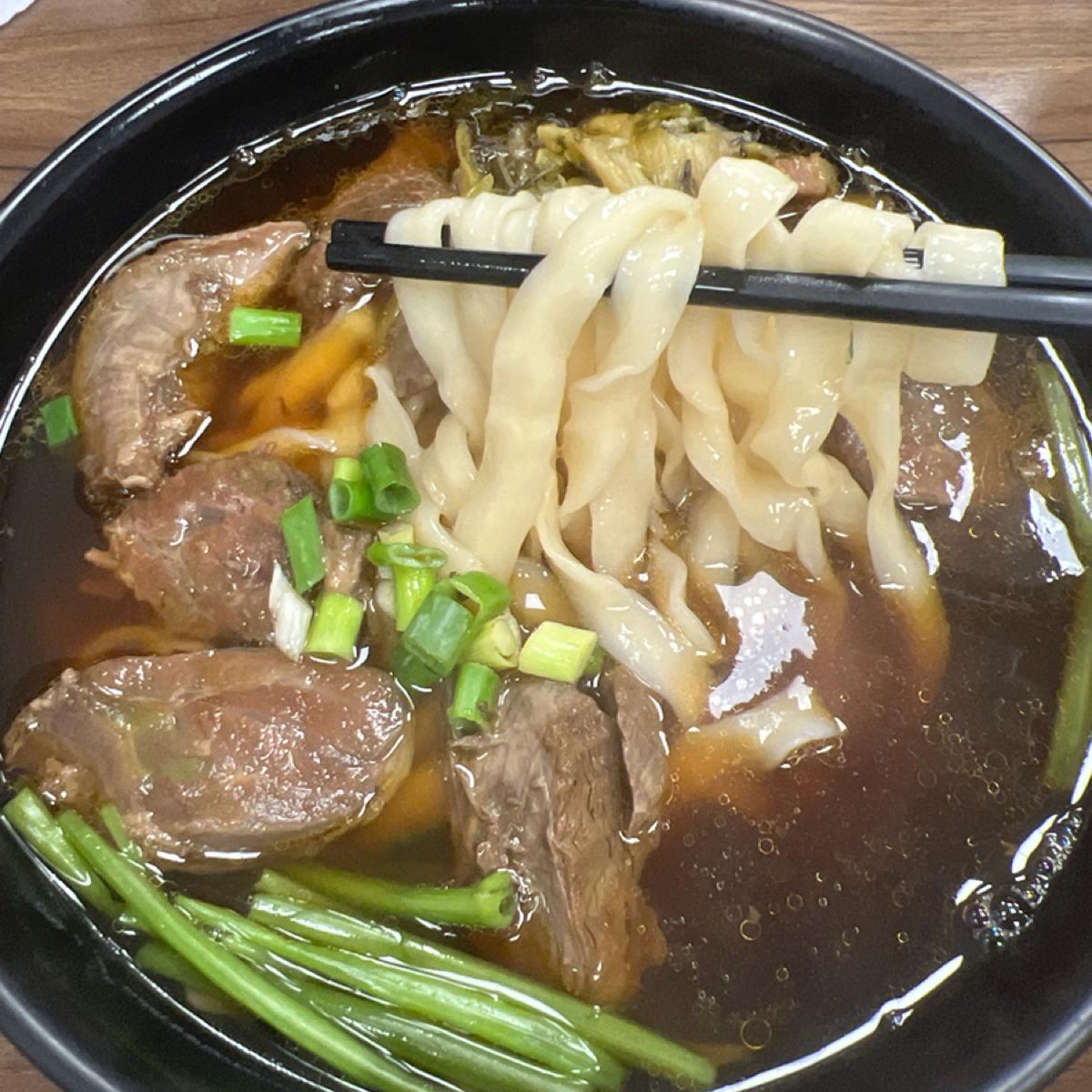 I ordered the basic beef noodles, and there were two types of noodles to choose from; this time I chose the wide noodles. When the dish arrived, the portion looked quite large, and it comes with green onions and pickled vegetables by default, but you need to specify on the menu if you don’t want them. There were about six or seven pieces of beef, coming from two parts; the shank part was acceptable, but the meat was a bit tough. The other part tasted like jerky and wasn’t very good, but fortunately, there were only one or two pieces of that 😅. As for the vegetables, I only saw the stems of water spinach, which was a bit disappointing. Since I chose knife-cut noodles, they were probably machine-cut; the noodles themselves were cooked soft enough, with a bit of chewiness, which was normal.