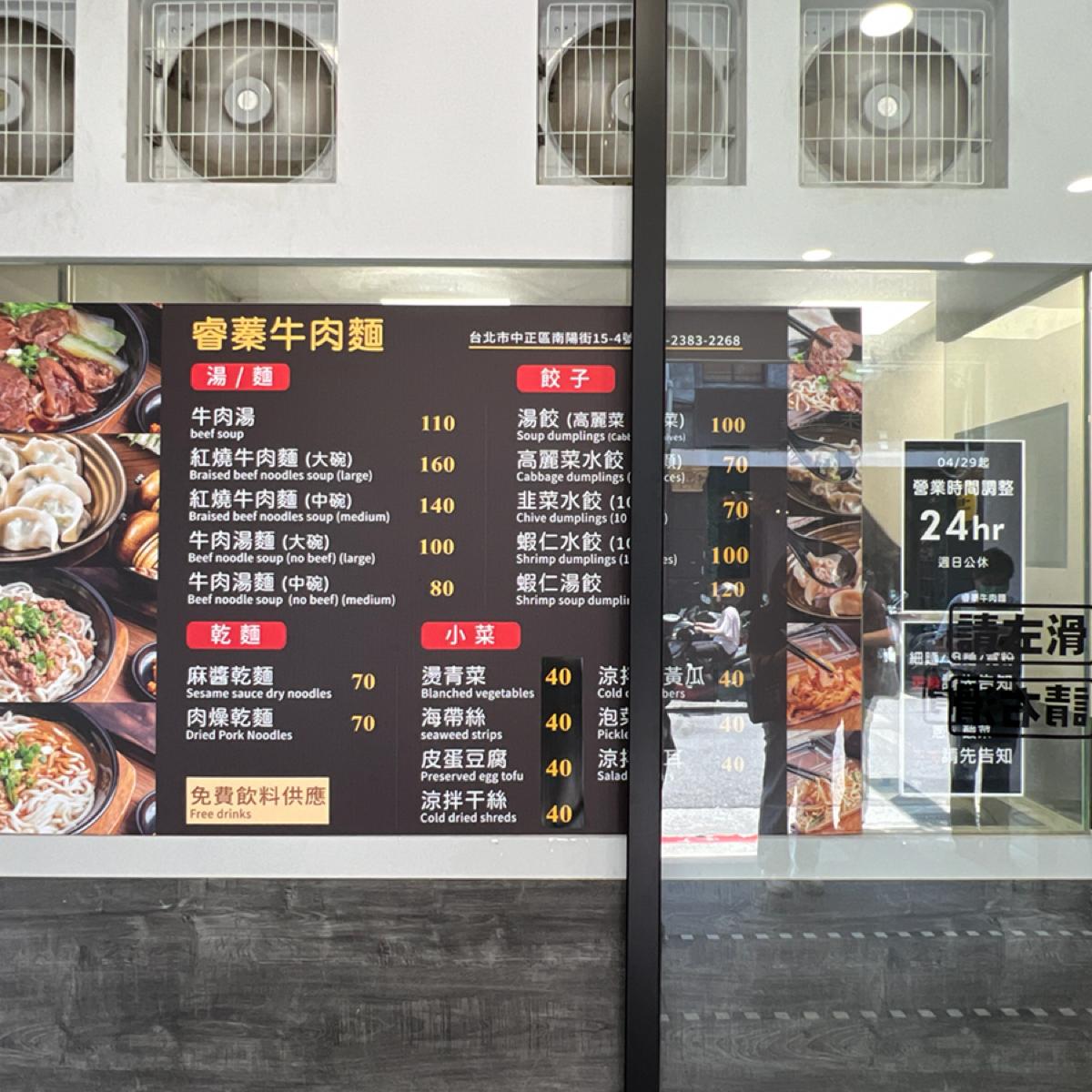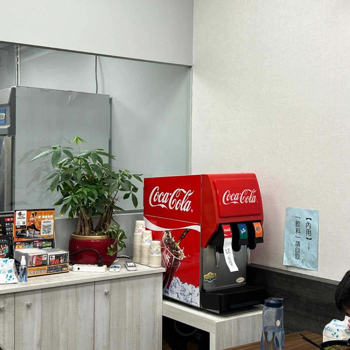 There are about 10 tables inside, accommodating roughly 20 people. The kitchen is separated from the dining area, so the smell isn’t too strong. There are only two air conditioning units, and only the areas near the vents are cool; the rest is quite warm. The shop offers a free drink machine with Coca-Cola, Sprite, and Meili fruit drink, and it has now changed to 24-hour operation, closed on Sundays.