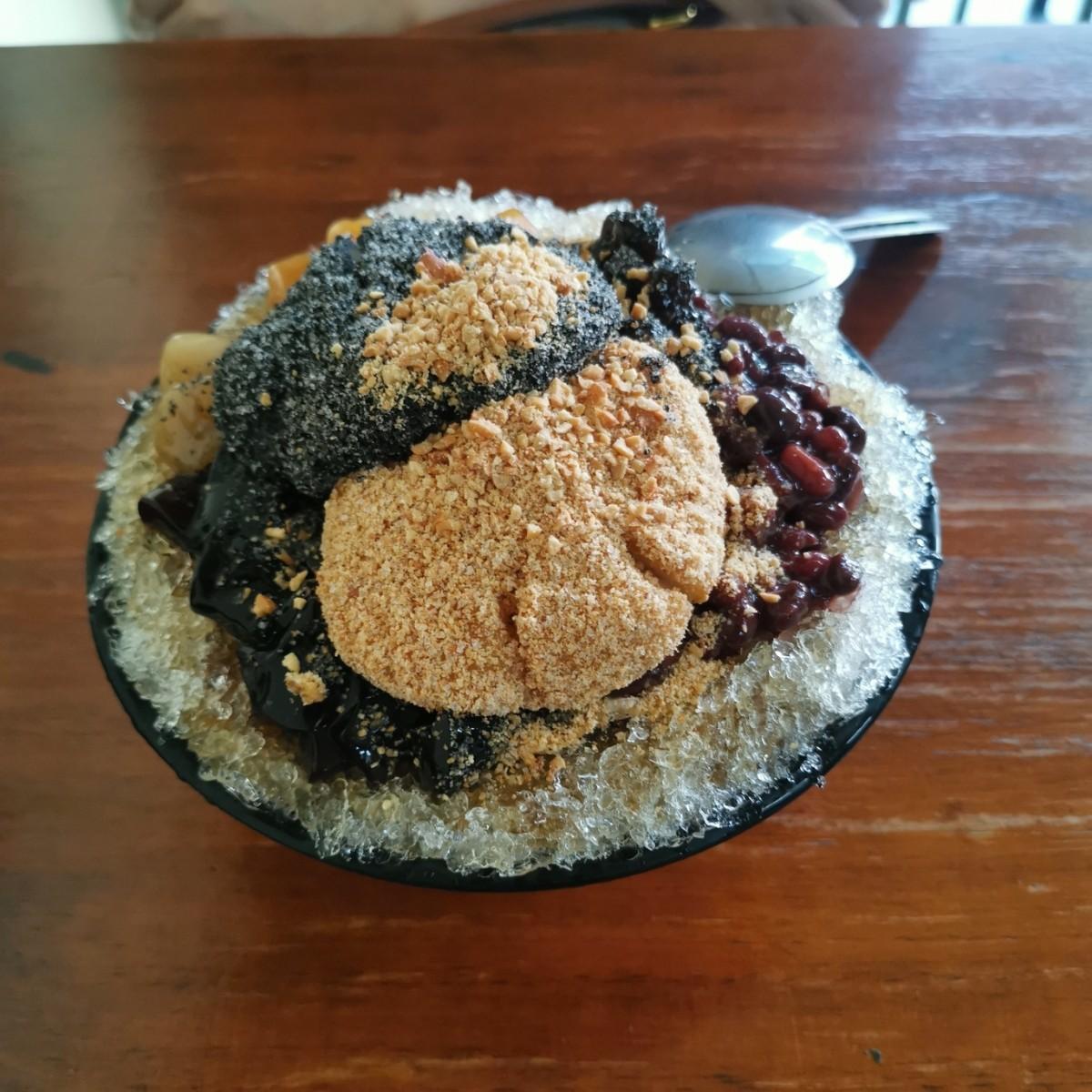 Taking advantage of the hot summer, I came to visit an ice cream shop that I have always wanted to visit. The most famous thing about this shop is its mochi. Today I ordered the cold ice + mixed mochi. When I was served, I saw big peanuts and sesame mochi, which were still hot. Yo! Eating it on ice really feels like a world of ice and fire!