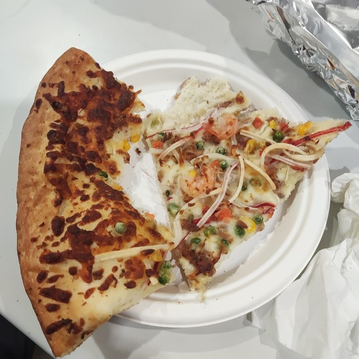 I saw a new pizza flavor (Seafood with Garlic White Sauce) on the shelves, so I clicked on it and wow, it was really bad! !