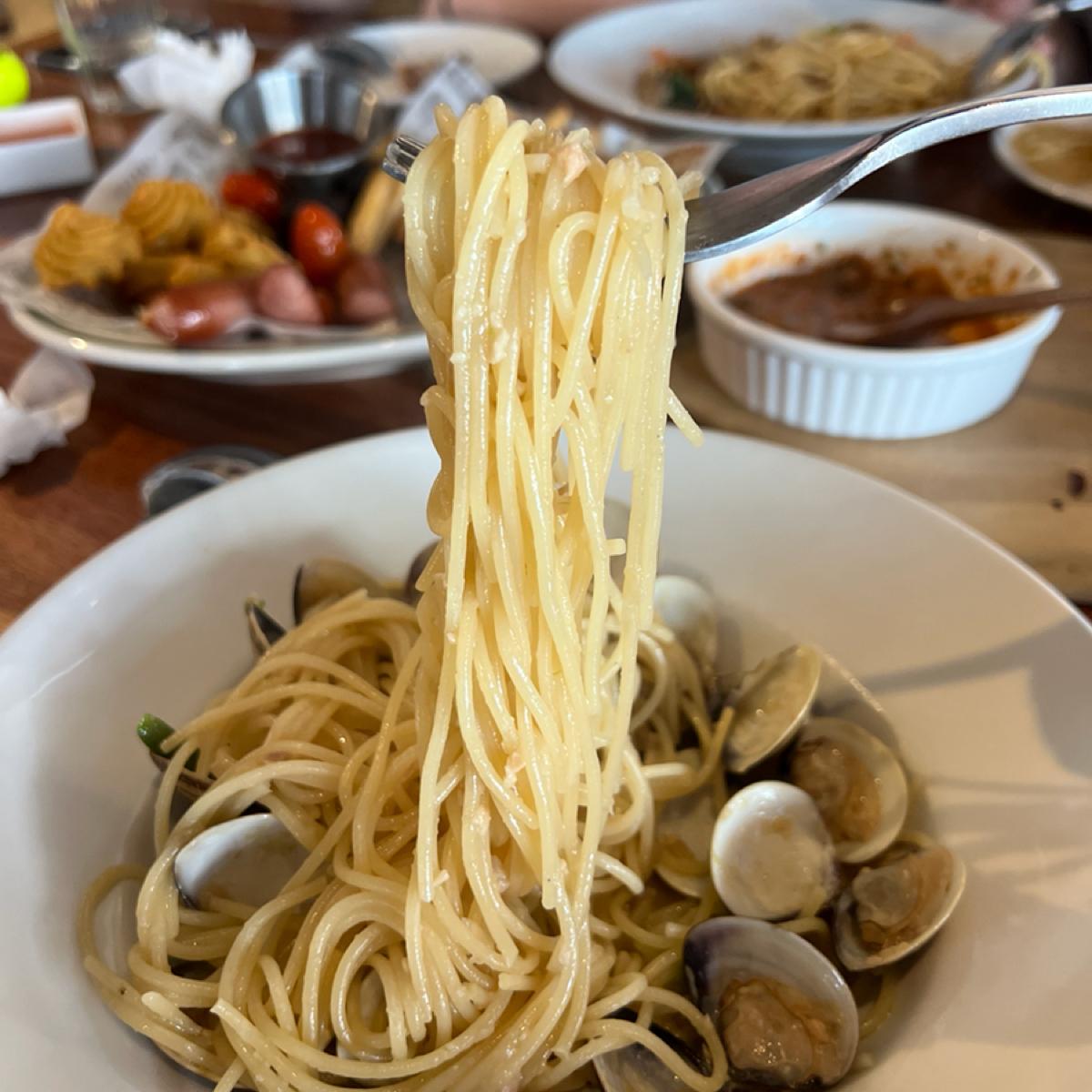 Let’s start with the dish I was looking forward to the most—the white wine clam pasta. When it arrived, I was amazed by the abundance of clams; they were large, incredibly fresh, and exuded the unique aroma of white wine, which was simply therapeutic just to smell. The pasta was cooked to perfection with great elasticity, absorbing the essence of the clams and white wine, and the texture and aroma were superb. The broth wasn’t too rich; instead, it had a light and refreshing quality, with a hint of saltiness and a subtle alcohol fragrance that combined wonderfully with the sweet freshness of the clams. The overall taste was very balanced. The quality of the clams and the seasoning of this pasta are truly commendable; anyone who loves seafood flavors must try it!