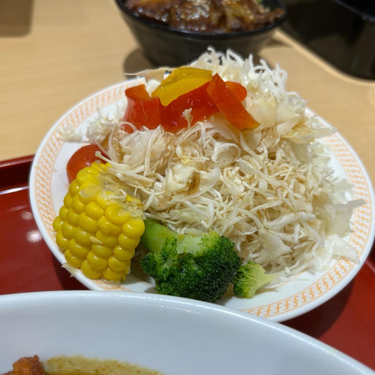 Later, I ordered another barbecued pork rice. The fried chicken with omelet eggs for my main meal was very tender and really crispy and delicious. Unfortunately, there were only 4 pieces of fried chicken, but they also had sweet potatoes, pumpkin and cauliflower, which were quite a lot. Different things. The set meal comes with a salad. I’m not sure what kind of sauce it is, but it’s quite satisfying. The corn is sweet and delicious. The miso soup is hot and not too salty but has a lot of flavor. It’s good. drink.