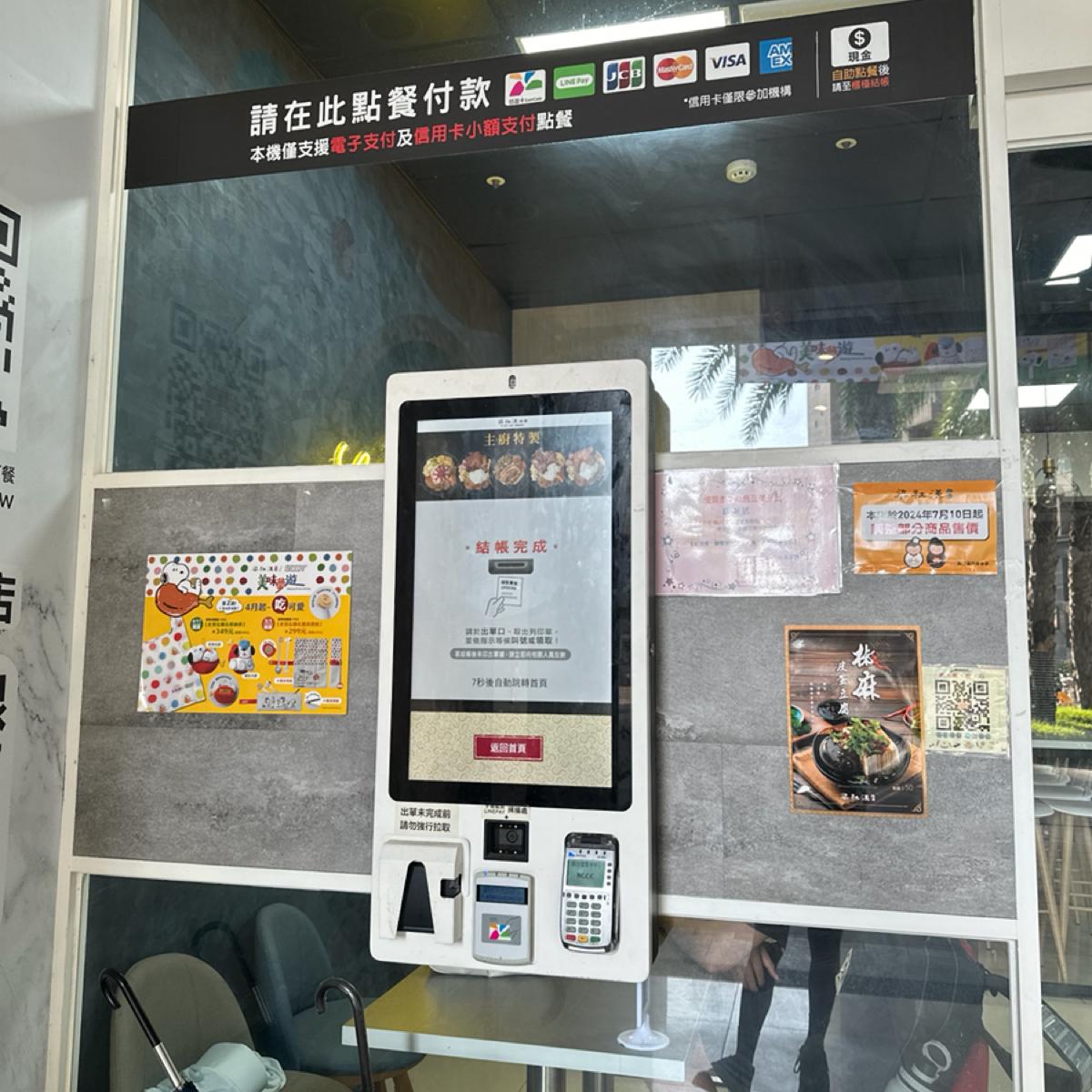 When ordering food at the self-service, check whether you need to pay online/swipe a card or check out with cash at the counter.
