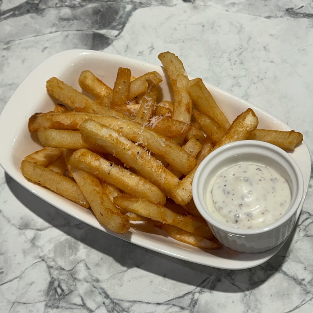 🍟 Truffle crispy fries ($180) are golden and crispy, served with fragrant truffle mayonnaise.