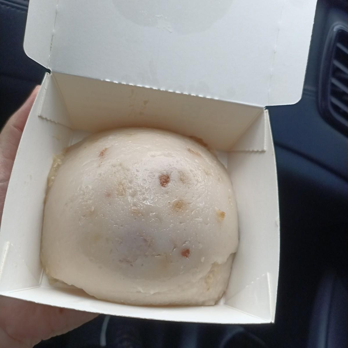 The rice pudding is very soft, with meat, mushrooms, and egg inside. The garlic flavor of the sauce is quite strong, but it's really good when eaten with the rice pudding.