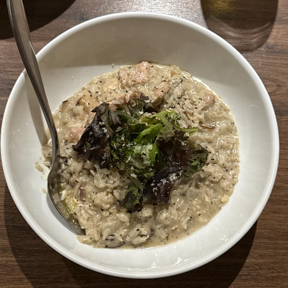 This dish is quite appealing in appearance with a rich, smooth sauce; there are plenty of king oysters that retain a substantial bite. The truffle aroma is noticeable at first, but soon overwhelmed by black pepper upon tasting. The amount of black pepper is rather excessive, causing the truffle's elegance and depth to be lost. The chicken performs well, with moderate tenderness that pairs naturally with the creamy sauce. Unfortunately, the imbalance in the details causes the main aroma to be overshadowed by the secondary seasoning.