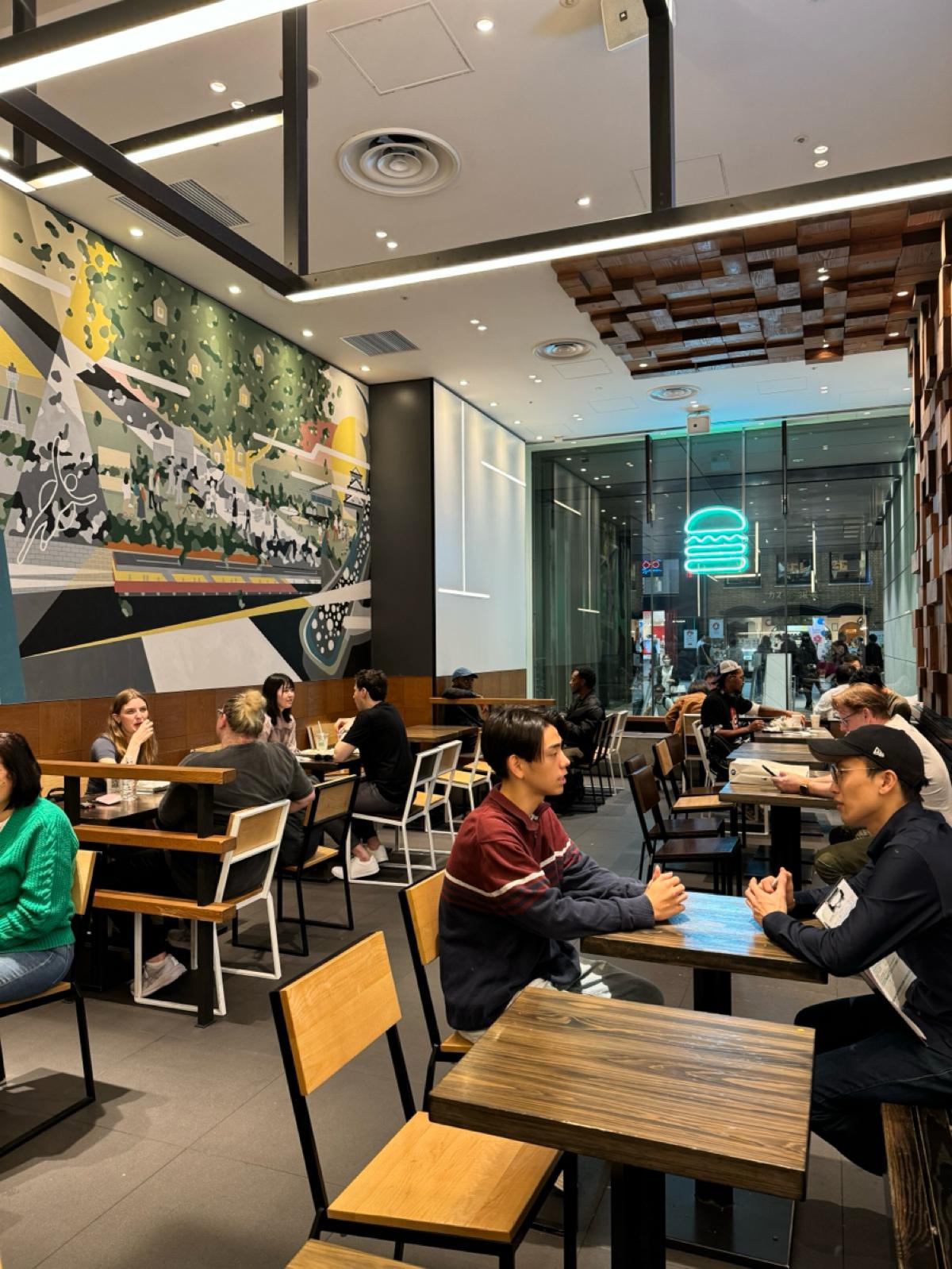 The indoor space is relatively spacious, and if it’s full, you’ll have to wait a little while for a seat. This time, I used the self-service ordering machine, and even though there were plenty of seats available, I waited over 10 minutes for my burger to be made.