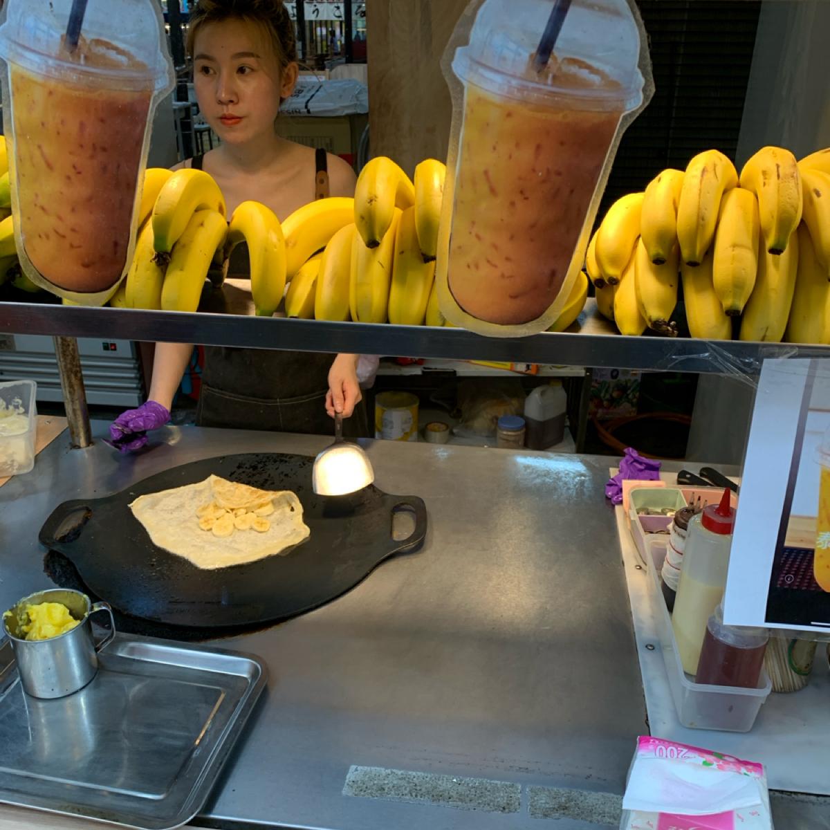 The banana pancakes are freshly made. The crust tastes a little oily, and the condensed milk is added to add texture. The banana filling is just a decoration, not a fusion. I wonder what the flavor will be if eggs are added?