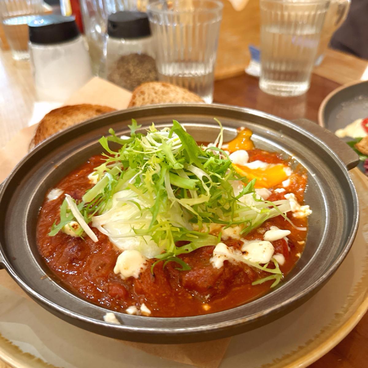 It is a dish made of homemade tomato paste and kidney beans stewed. It is good to break and stir the hot spring eggs, but the portion is not much, and the bread only comes with two small slices.