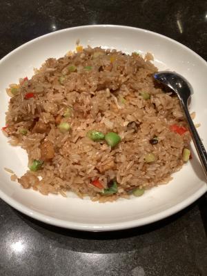 Tempeh and Pine Nut Fried Rice - The rice is non-sticky and has distinct grains, but it is a little oily. The pine nuts are mainly sprinkled on top and not fried in. The tempeh inside is not too soft, and there are some diced microgreens that are crunchy but not too chewy. A lot, quite satisfactory