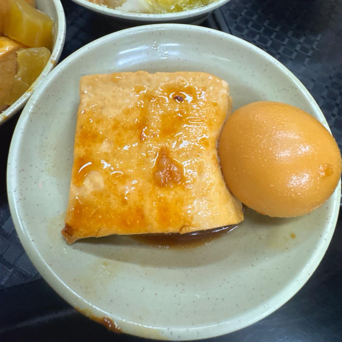 Although it’s just a side dish, it’s a very economical option 😆 Both only cost ten dollars 👍 If the tofu sells out earlier, it's cooked fresh on the spot, so sometimes it’s really flavorful and delicious 😋 other times it may taste a bit bland 🥲 The braised egg is also 😑 it’s a casual culinary delight 🤣