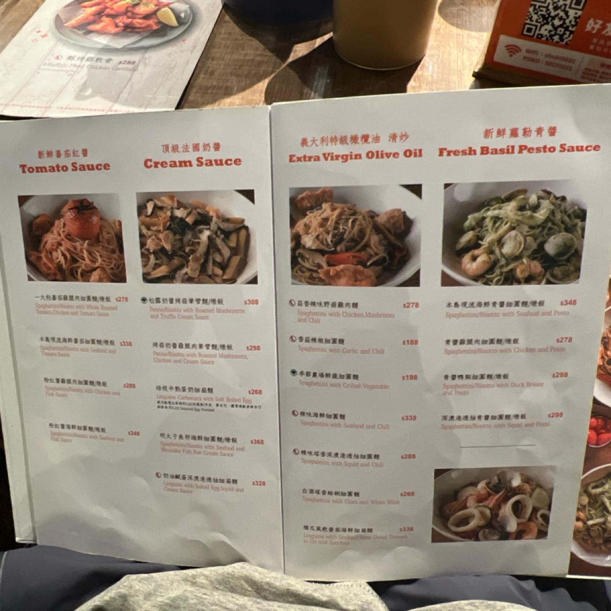 They offer pasta, risotto, baked dishes, pizza, fried items, as well as salads and drinks. The variety is diverse and the menu is rich, which can basically satisfy various needs. The portion sizes and flavors are, in my personal opinion, not stunning but still decent. It's worth a try.