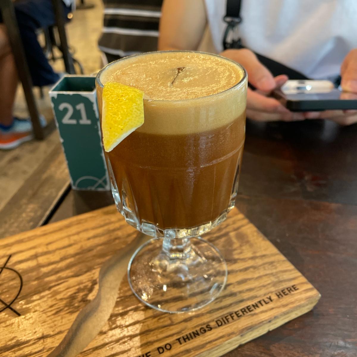 After the Phaya Thai (the Sicilian cup) ordered by my boyfriend was served, there was a tableside performance😻Pour it from the shaker into the glass, apply lemon peel on the rim of the glass, and spray twice a liquid that looks like sugar water or lemonade. It’s very ㄏㄧ花 has a sense of ritual, and the foam is also very delicate, comfortable and delicious~