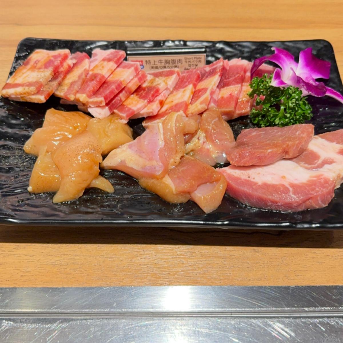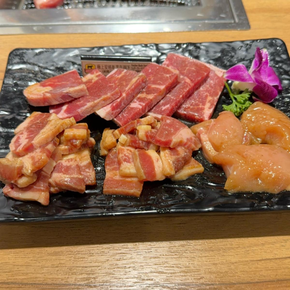 What I personally think is special is that you can choose 3 other kinds of meat in the set meal, that is, you can choose 3 out of 5. It is suitable for people who want to try other meats. I chose beef pork belly and chicken that I forgot the name of the other two. The chicken is roasted. It was softer and more delicious than expected. The beef belly was cut into too small pieces and was not very recommended. The Angus black beef felt difficult to handle. The roasted beef was not very tasty. If I come here next time, I will not order this. The meat is already seasoned, so it's full of flavor without the need for sauce.