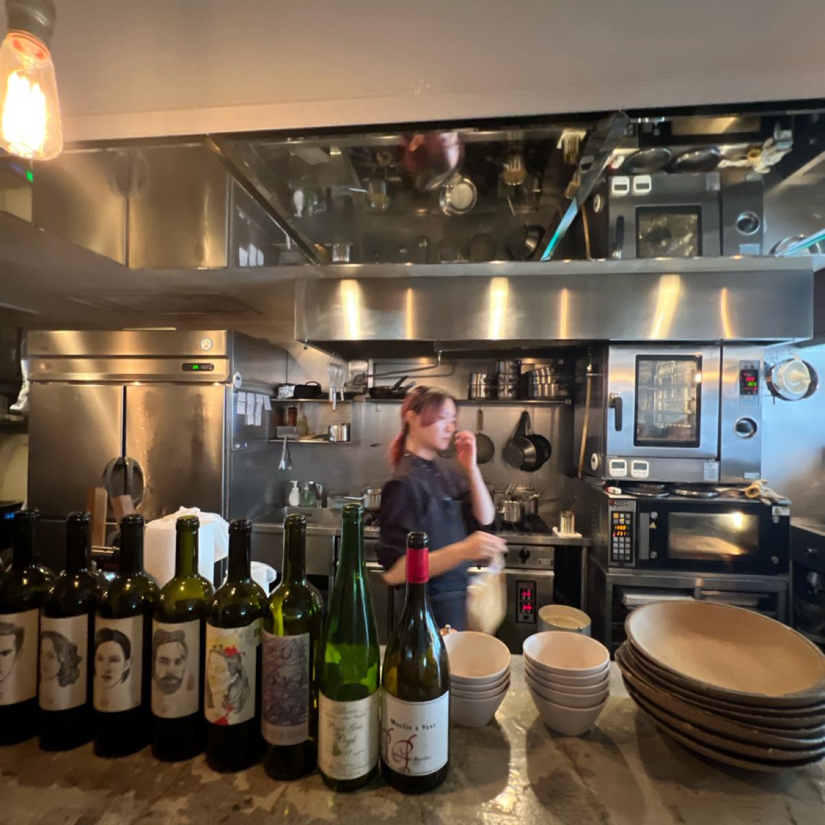 Almost 80% of customers order the popular freshly made ham pancake. The minimum requirement is to order a drink, so it's recommended for two people to share a plate, which is just right. Being at the bar in front of the kitchen really makes it feel special. The combination of fresh ham, butter, honey, and crispy yet soft pancakes truly feels more like an intricate dish than just dessert. The flavors are salty and sweet, crispy and soft, distinct yet harmonious, which makes it easy to understand the long wait. Eating this alone would definitely be too much, haha!