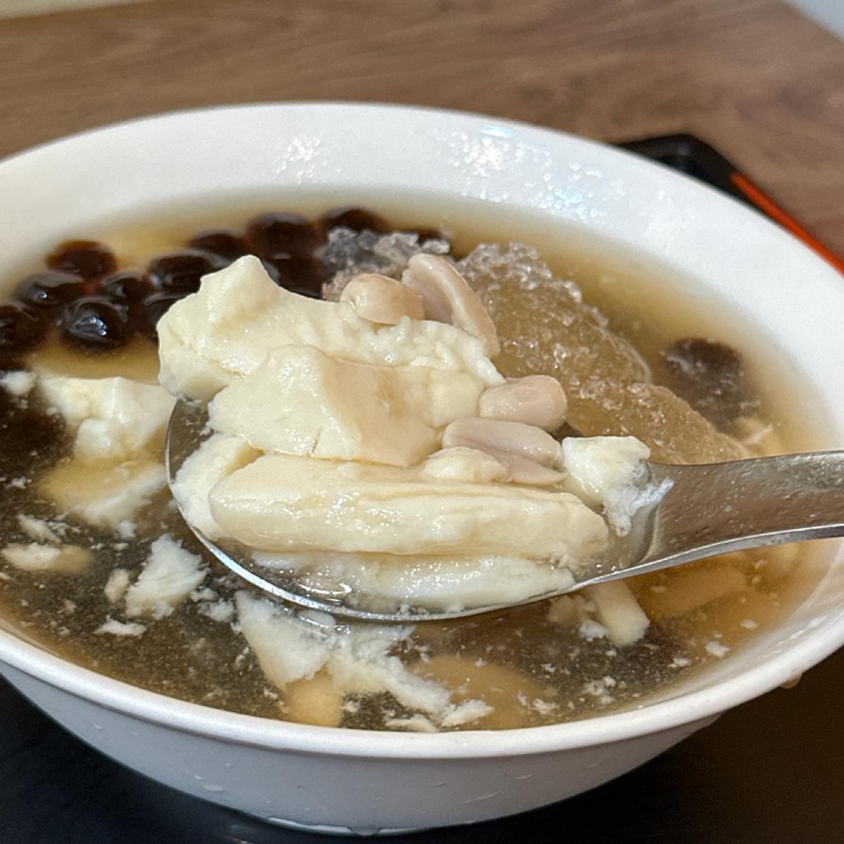I have to say that these simple combinations will never make you tired of eating them. The tofu pudding itself is very smooth, but you can taste the original solid feeling of soybeans. It is an ancient-style tofu pudding where you can taste the raw materials! The rice balls are elastic without being too separated from other foods, and they won't stick to your teeth. The peanuts are as expected. Overall, the bean curd is very in line with expectations, and the price of a bowl is not too expensive, so I highly recommend coming here to try their signature bean curd!