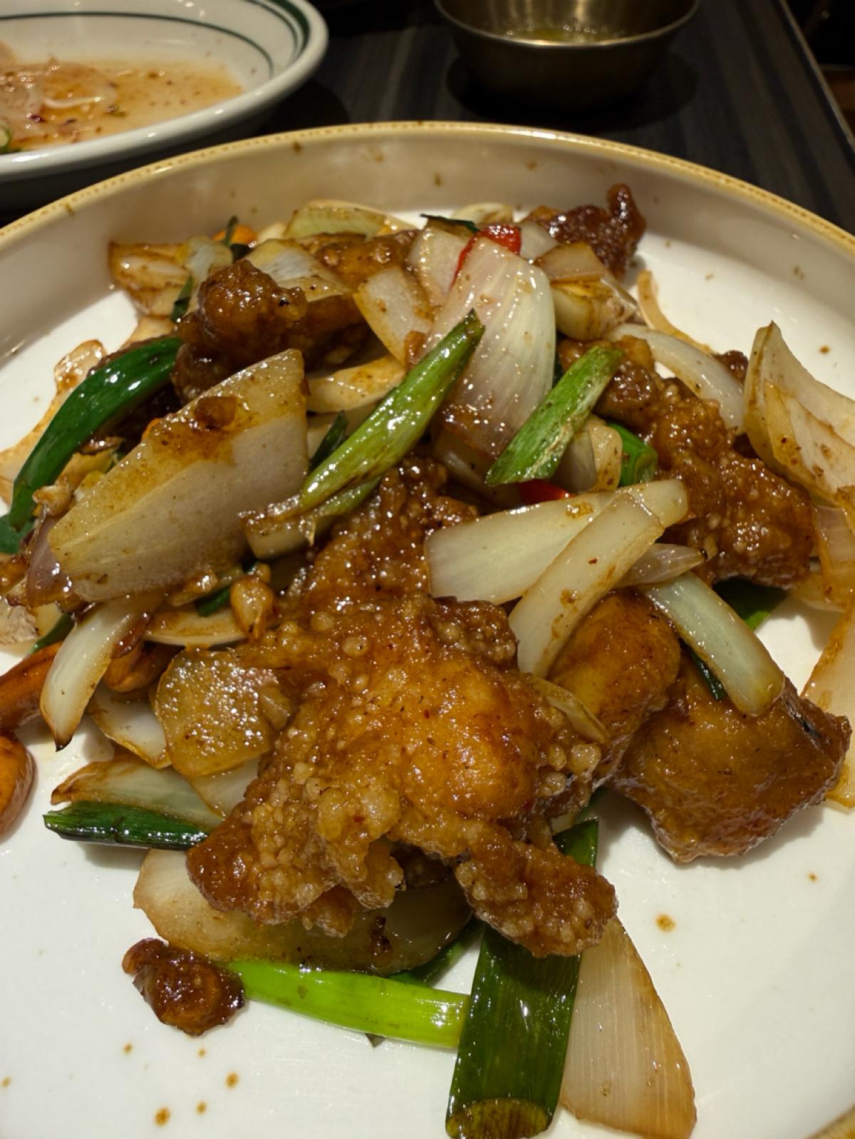 The complimentary spicy chicken was quite tough, the rice flour wraps were too thick and oily, and the cashew chicken lacked wok hei. The taro sago dessert was overly sweet, but it was the most quintessentially Thai dish here 😂
