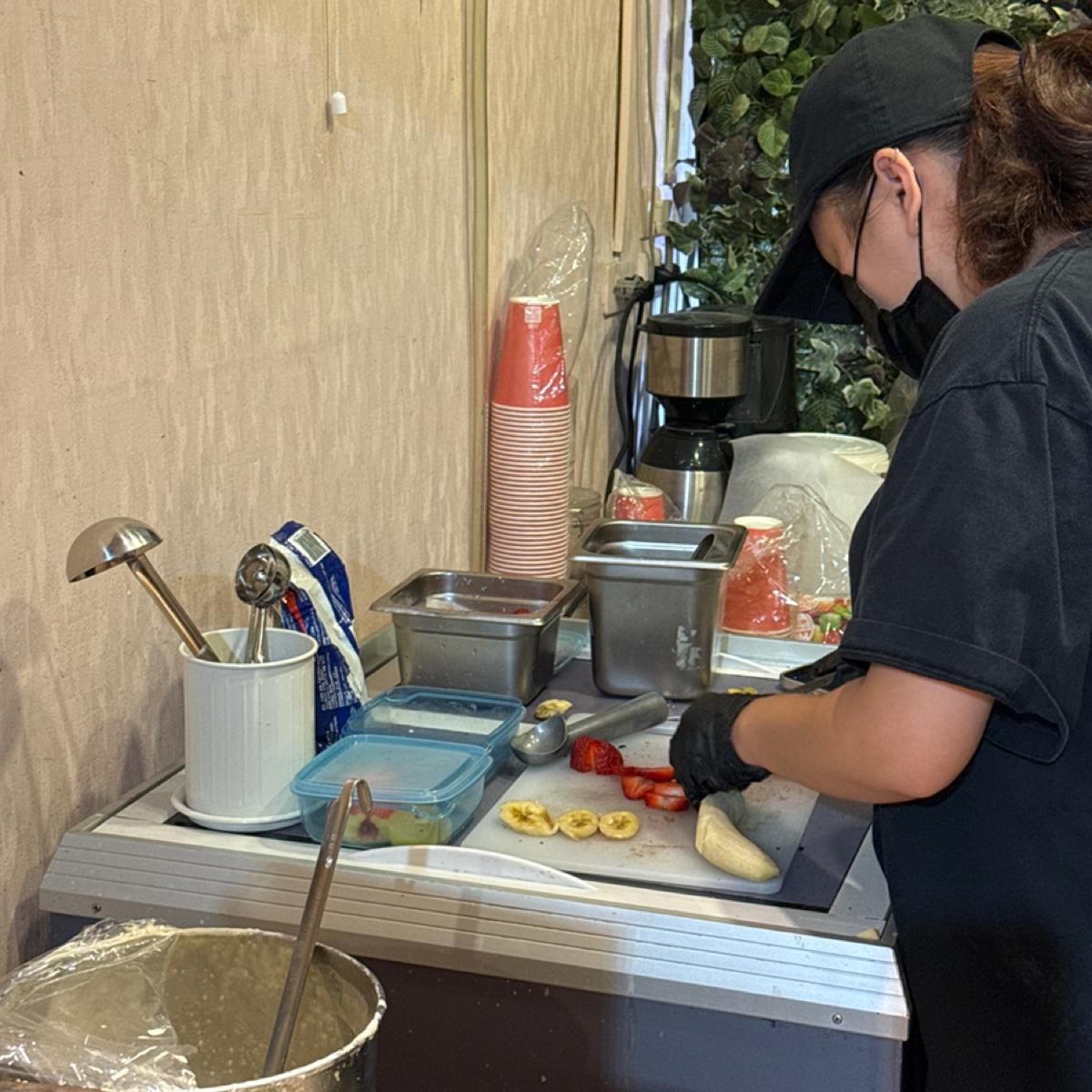 Their Japanese-style soft crepe—it's not the crispy French crepe style but leans more towards a chewy, soft, cake-like texture. It’s warm and has a delightful chewiness, which is a big plus.