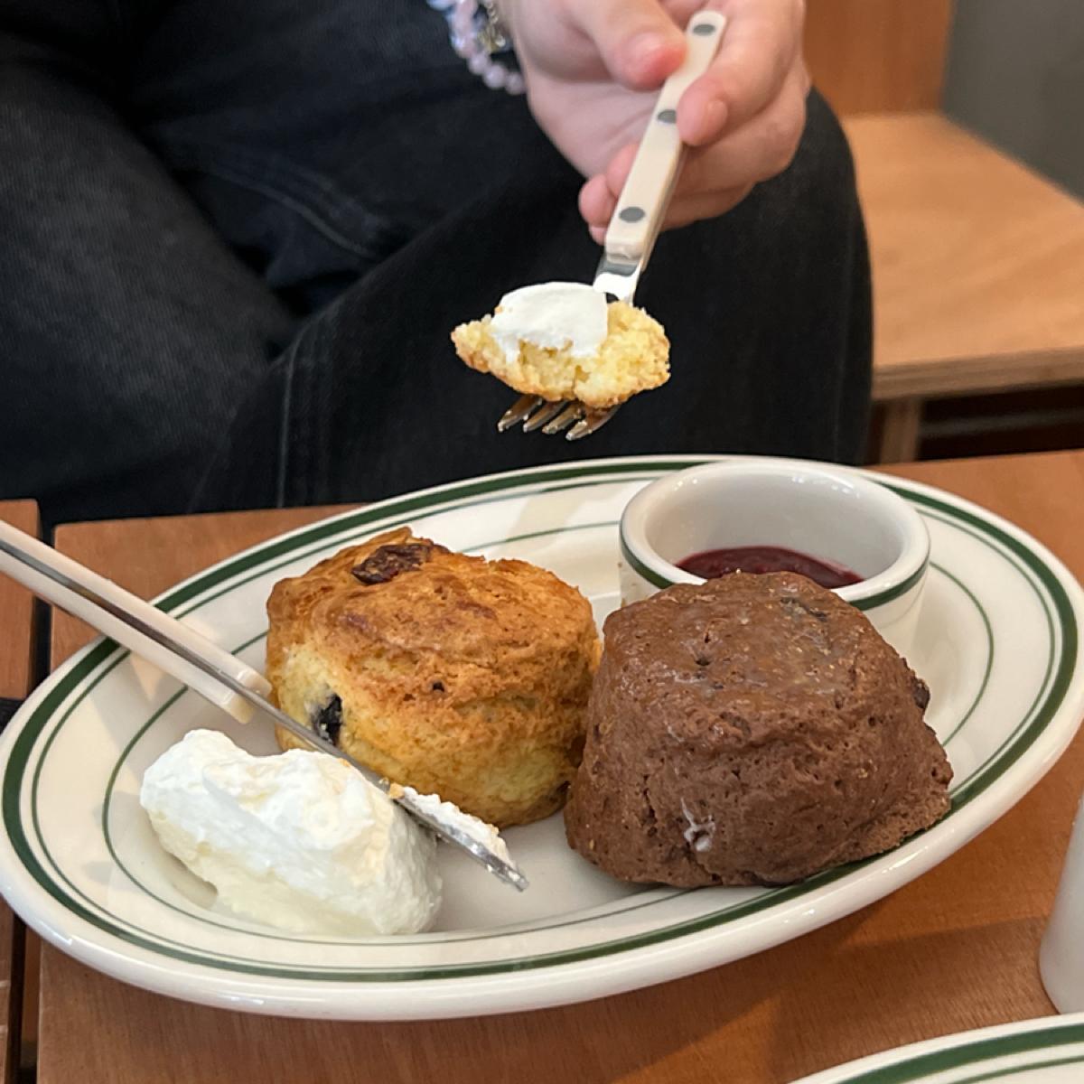 The scones are baked to order, crispy on the outside and soft and firm on the inside🥺