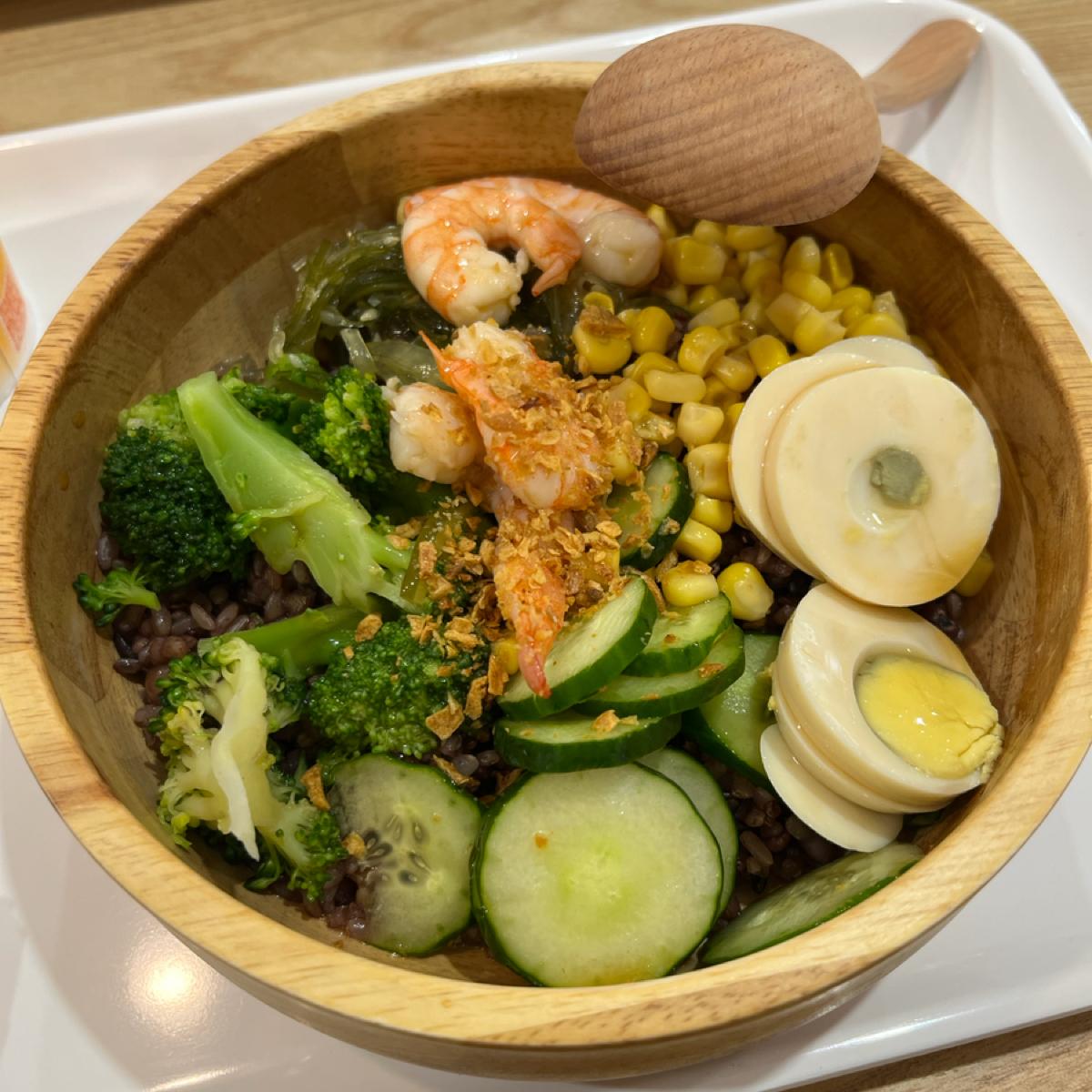 Then choose which staple food you want: white rice, five-grain rice, lettuce, half and half