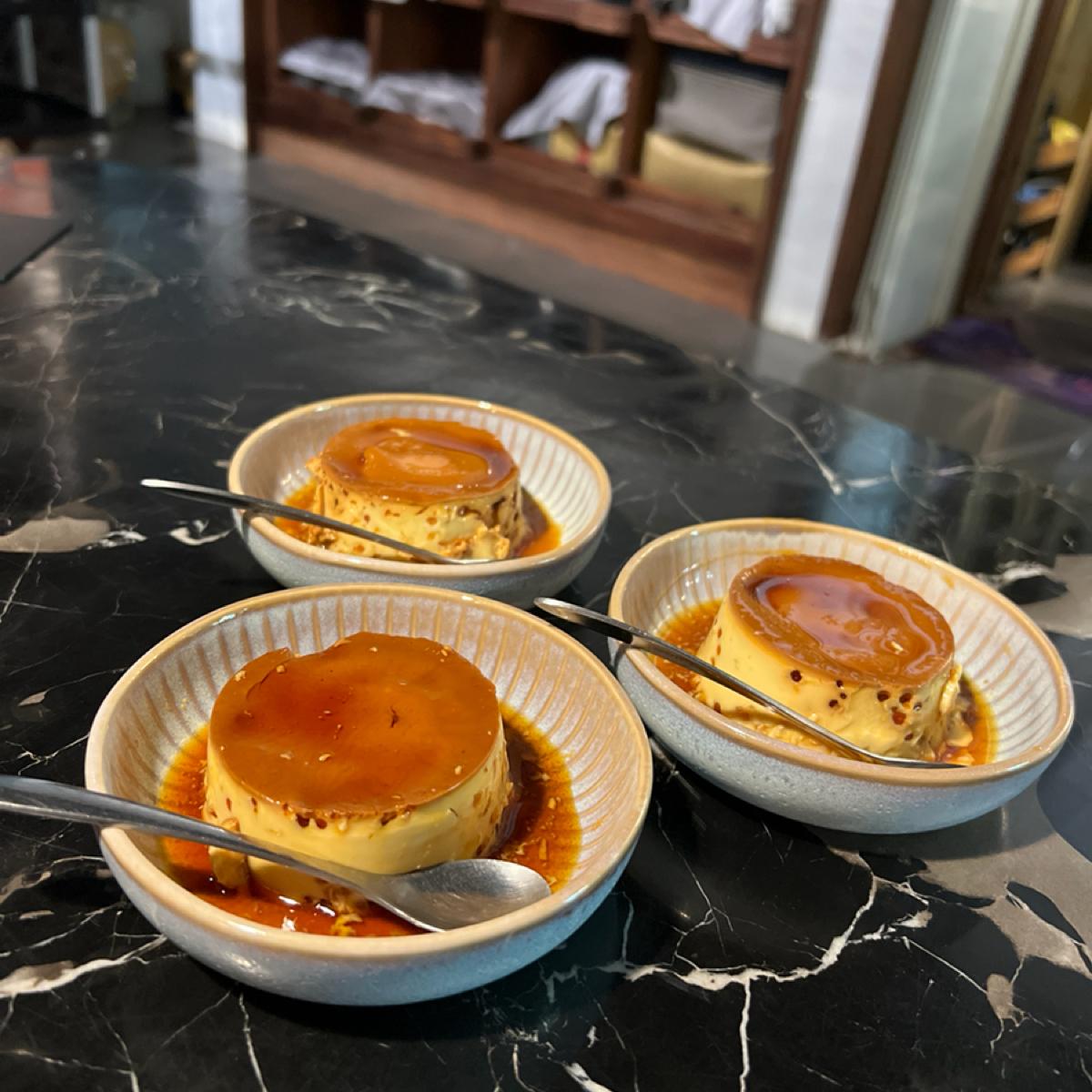 This time the three of us ordered the 3980 set meal and also purchased an 8oz plate of buttocks. The soups they ordered were old hen soup and spicy soup. The spicy soup also contained stinky tofu and duck blood. The beef in the set meal was made from Japanese three-fermented beef. Omi beef, one of the Yamato beef, has very beautiful fat. The parts include tendon, shoulder blade and plum blossom core. Personally, I like the shoulder blade the most. It tastes soft and tender and has the least strong smell compared to the other two parts. Yes, the extra butt is Japanese Miyazaki beef, which tastes very soft and tender, and is very large. It is very refreshing to eat in one bite. The seafood is quite fresh, and it is delicious without special sauce when it is cooked. Order dessert. The caramel pudding 🍮 has a hard texture and it feels a pity that the heat control is not good~