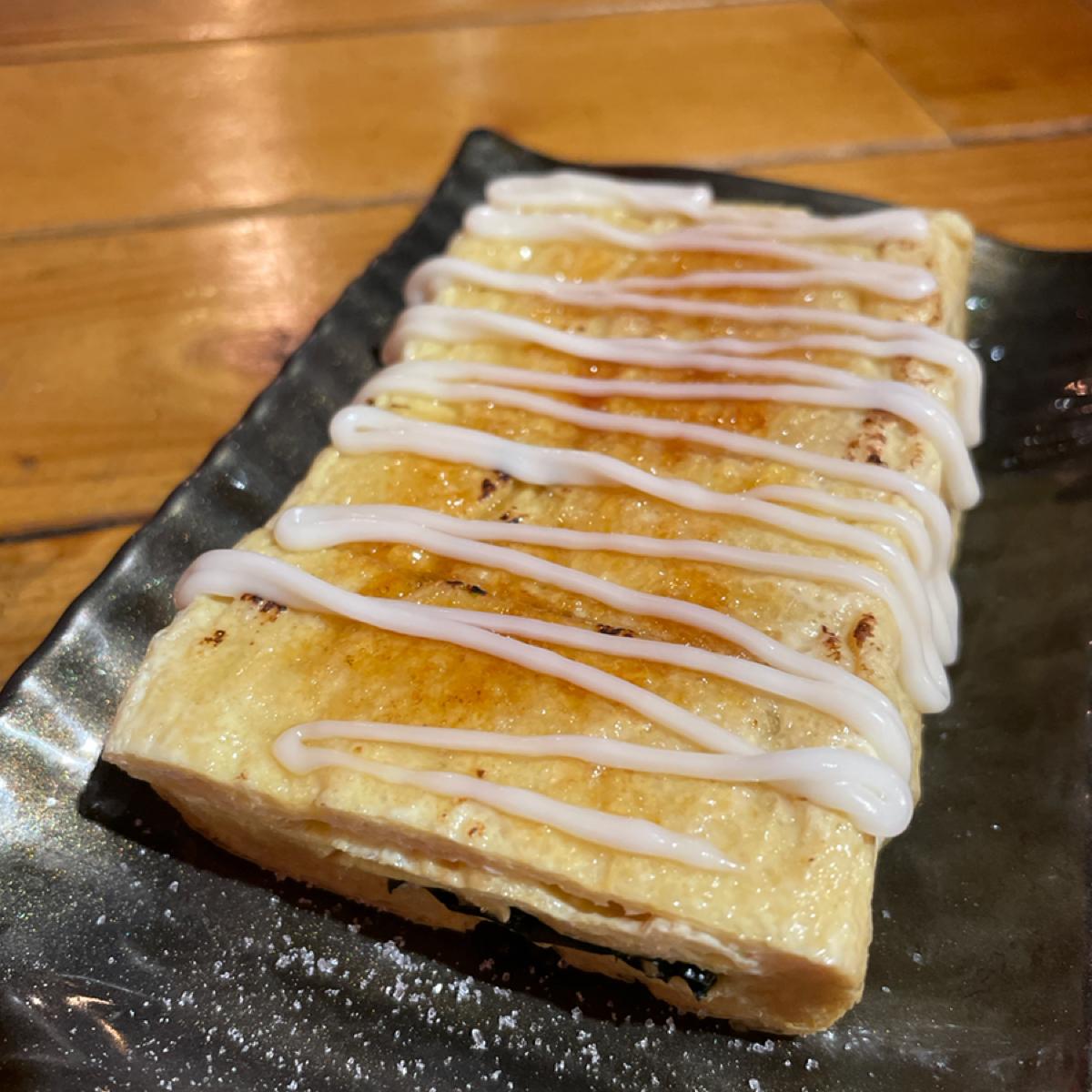 There is a thin layer of caramel and tasteless mayonnaise. The tamagoyaki has many bubbles and holes and is not delicate overall. It can also be seen from the cut surface that this is not a delicate tamagoyaki.