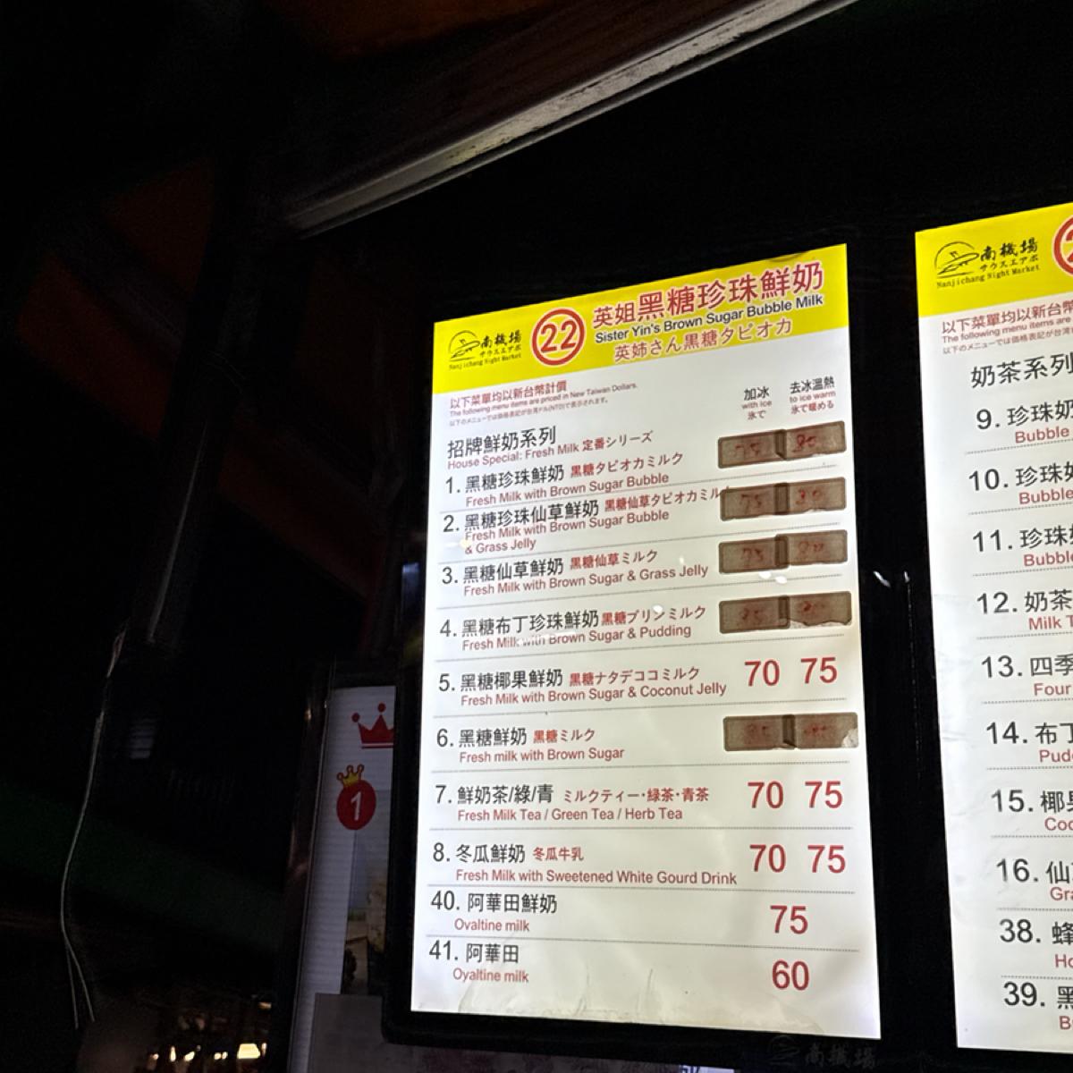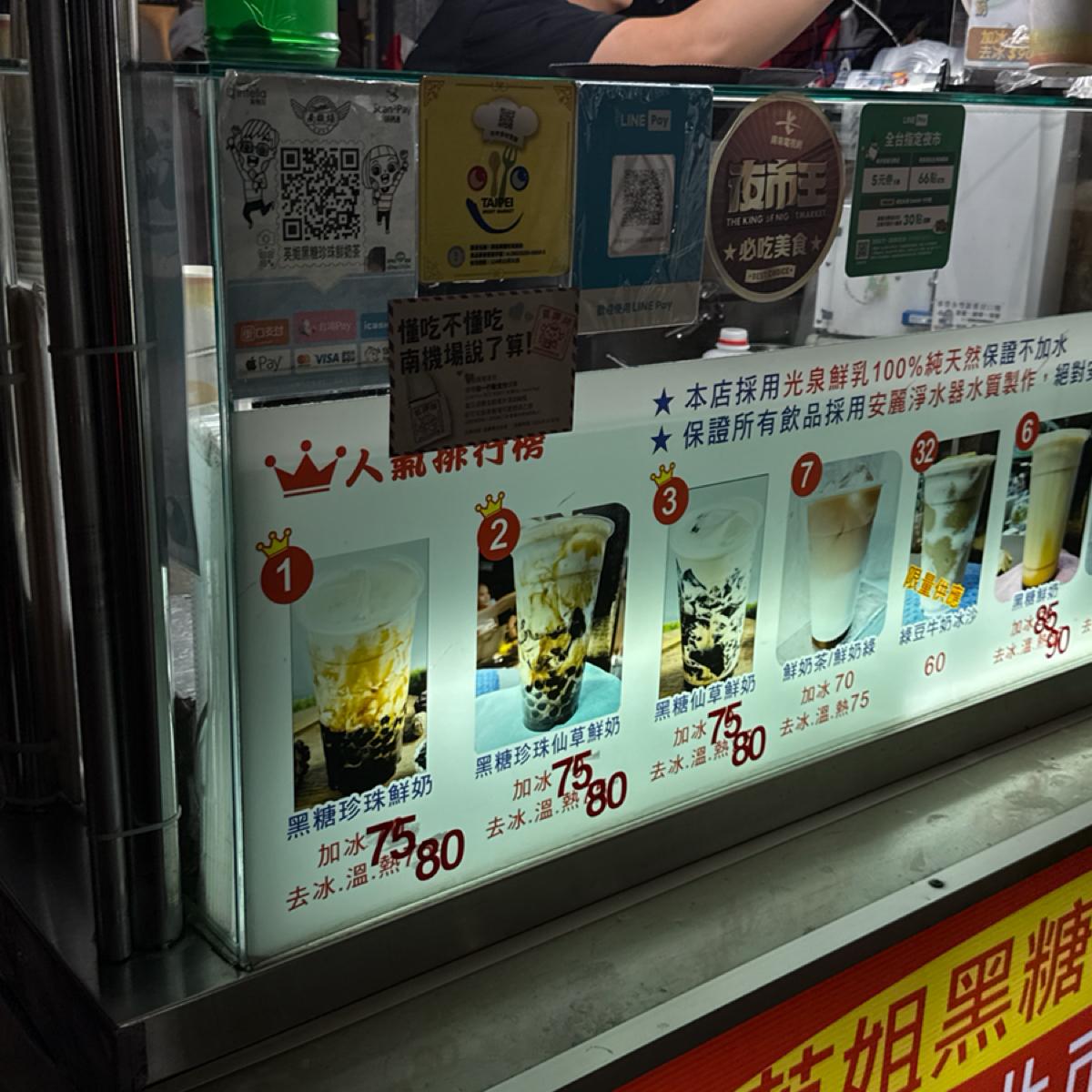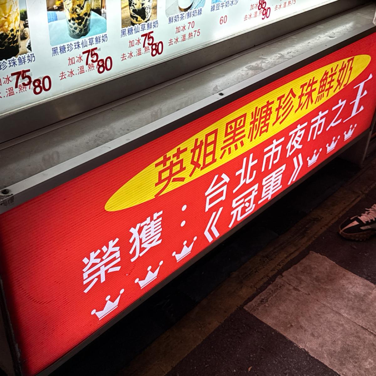 At the entrance of the South Airport Night Market, a small stall named "Sister Ying's Brown Sugar Pearl Fresh Milk" displays a striking banner: "Night Market Champion." Such a title inevitably makes one stop in their tracks. Even though I usually don’t go to night markets specifically for bubble tea, this time I decided to investigate due to this accolade.