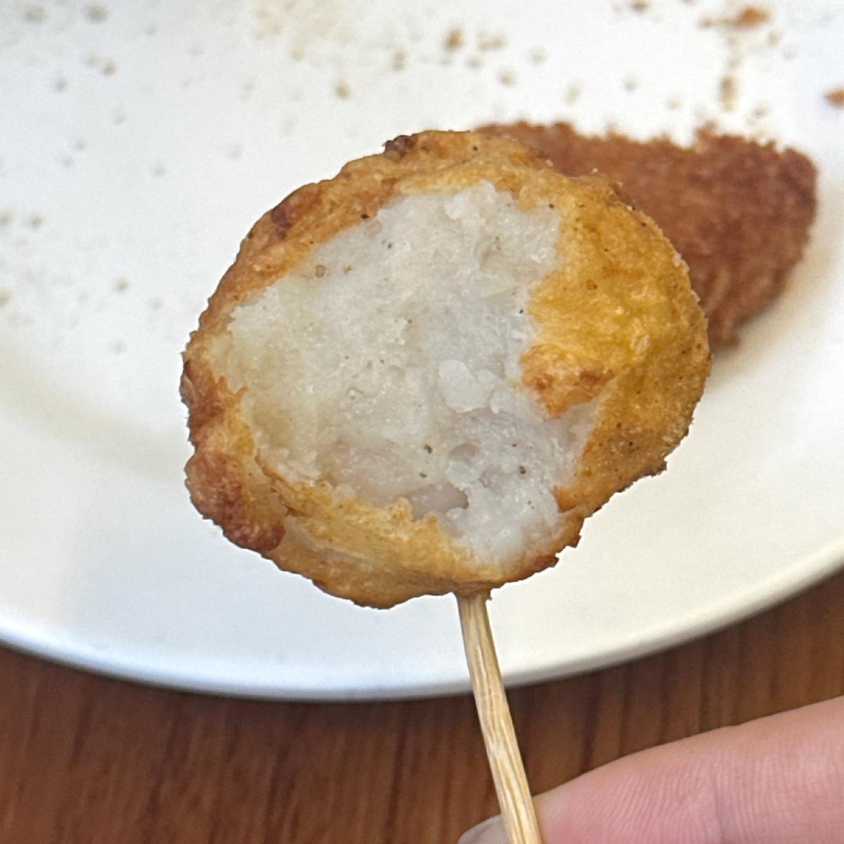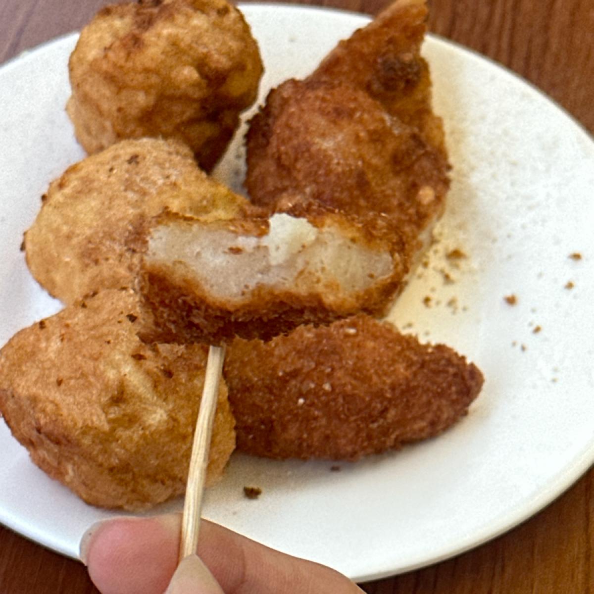I highly recommend this if you are going to eat it for the first time. The fried dough sticks are crispy and have a crunching sound. Needless to say, the squid balls inside, the aroma of the fish paste and the texture of the squid are so chewy. I really think you must eat it! !