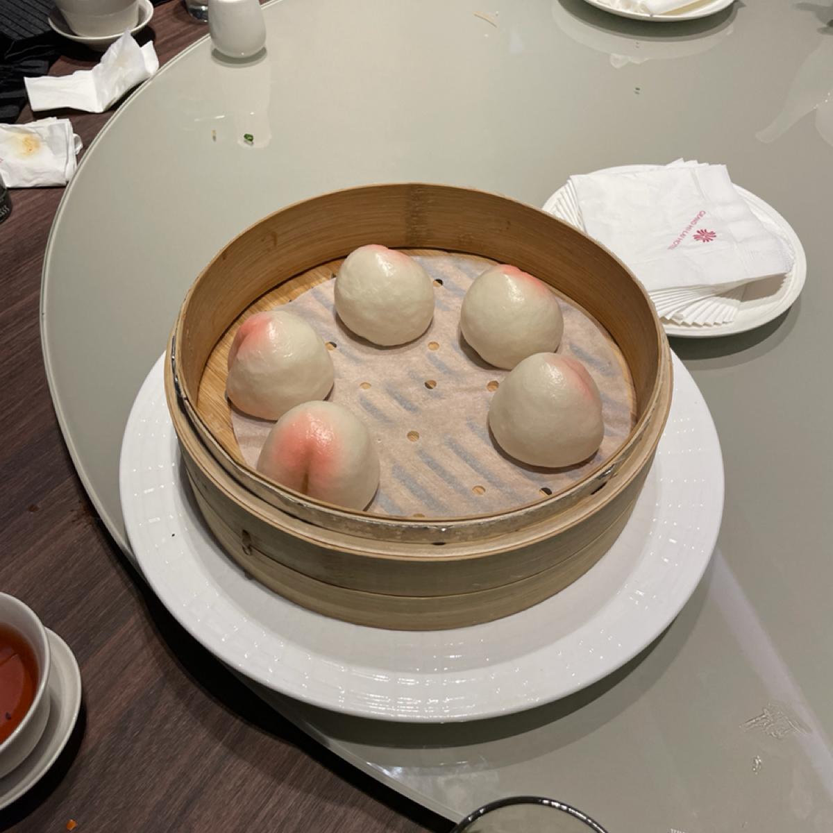 Later, we added some side dishes, and the rice rolls had a rich texture! The shrimp fillings were all very fresh~ The spicy oil dumplings were substantial, and the sauce was well-prepared! I was so full, but I couldn’t resist eating the turnip cake and fried rice! For the birthday, we were given longevity peaches, and for the Mid-Autumn Festival, we received custard mooncakes, both of which were quite nice!