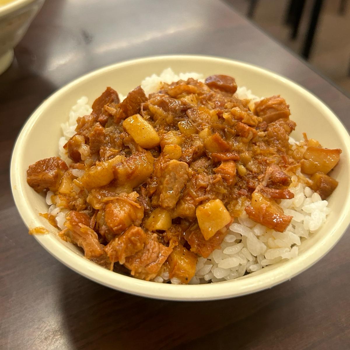 The braised pork rice performs excellently; the ratio of fat to lean meat is great.