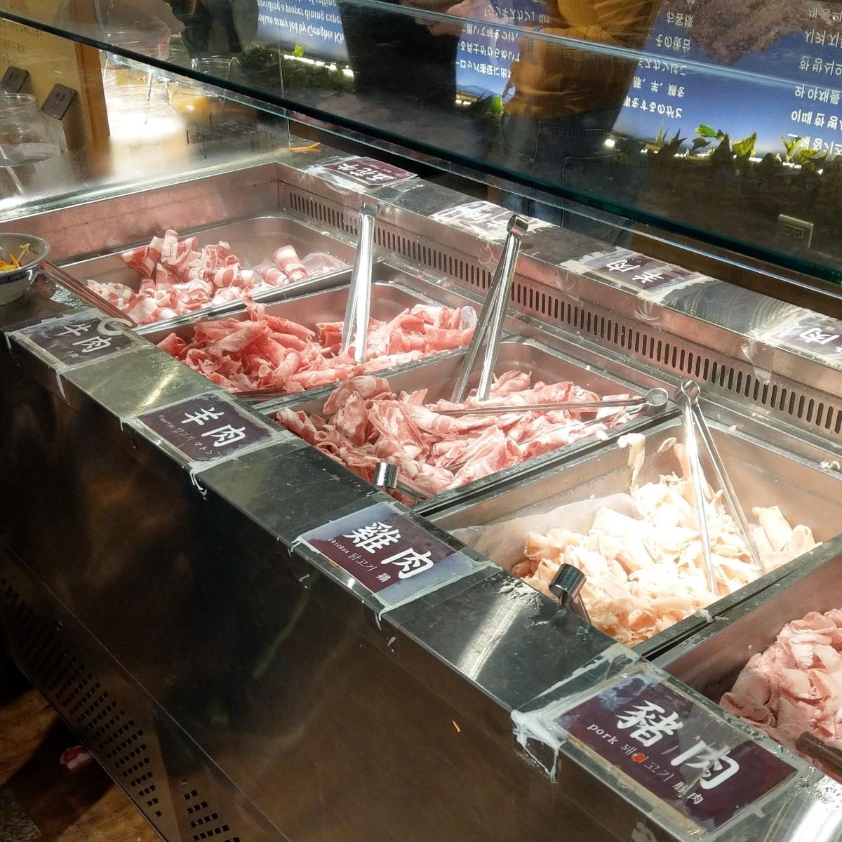 The staff guides you to your seat and will first ask about the hot pot soup base flavors. Today, the selections are classic spicy hot pot and pork bone broth. Once you’ve made your choice, you can head to the buffet area. Toward the end of the meal, a staff member will come to your table for the bill. On weekdays for dinner, it’s $479 per person, payable in cash or by card, with an invoice that has a carrier, and a service charge of +10%.